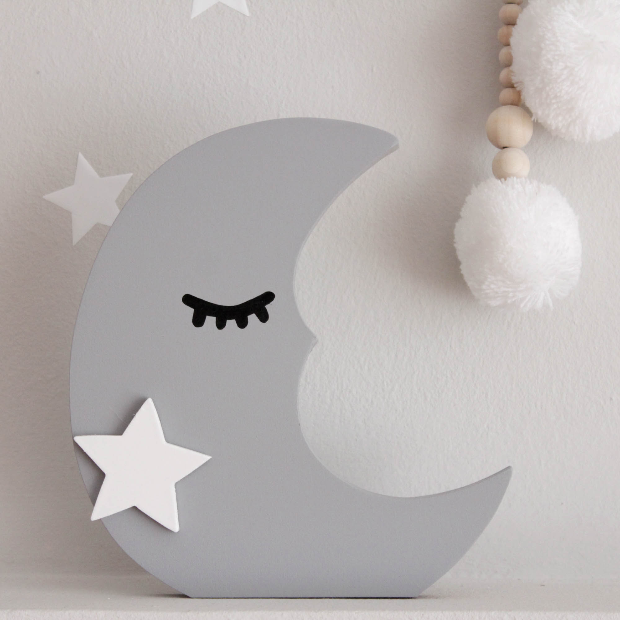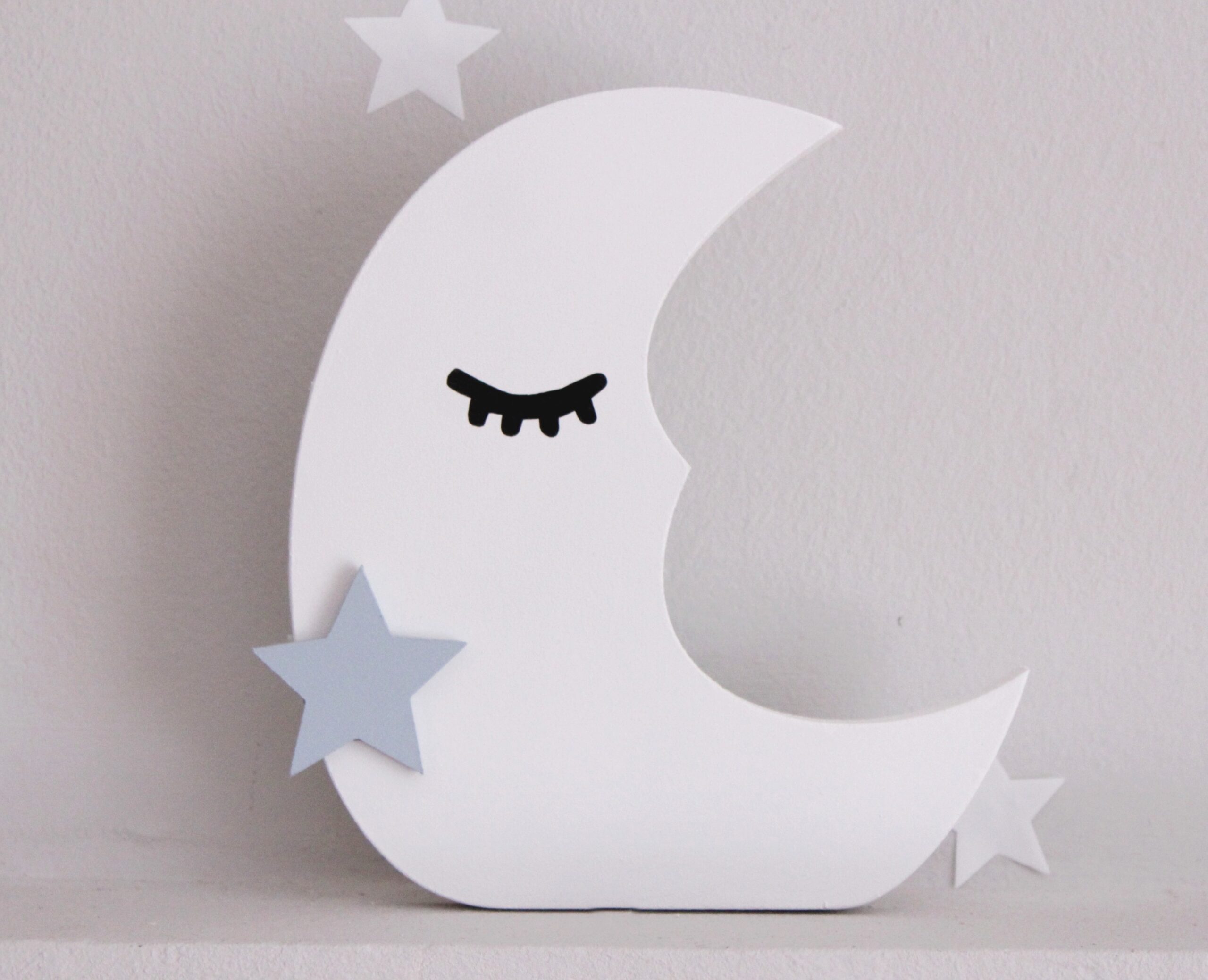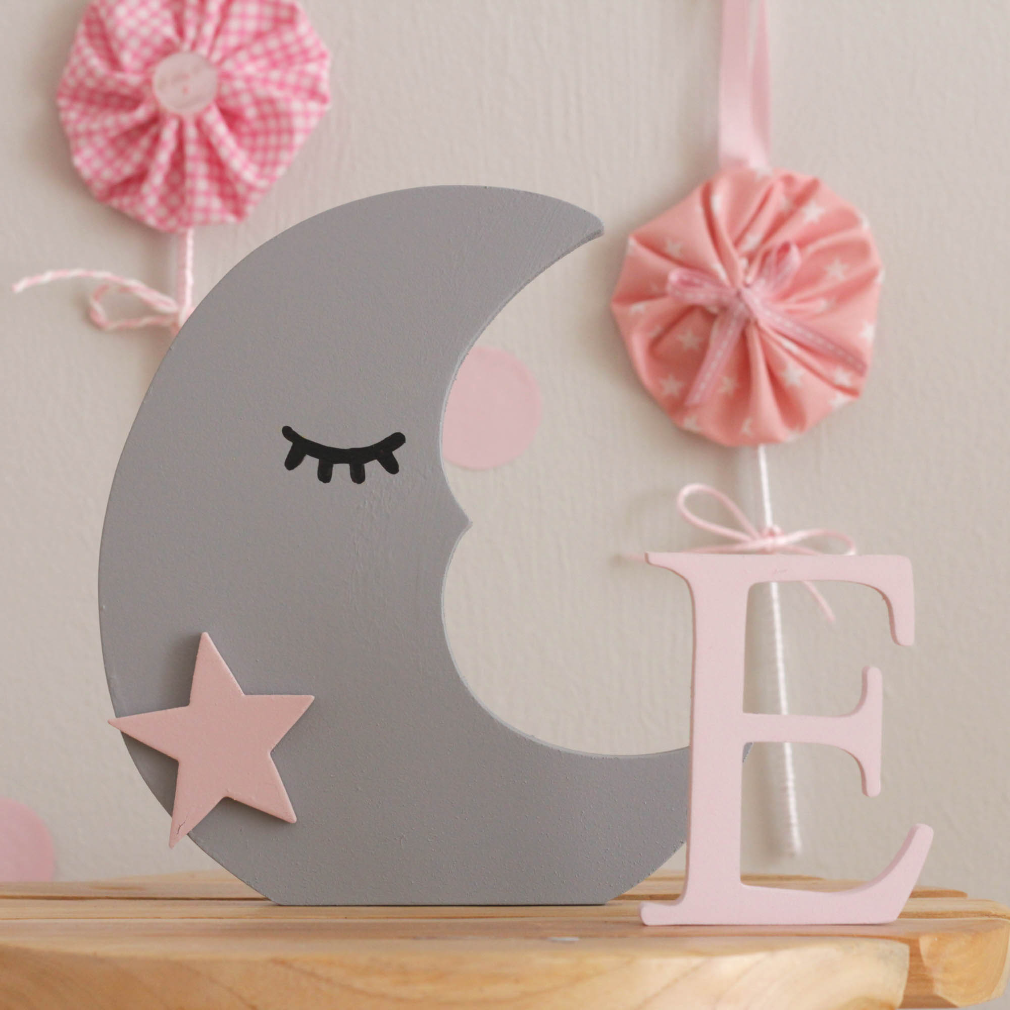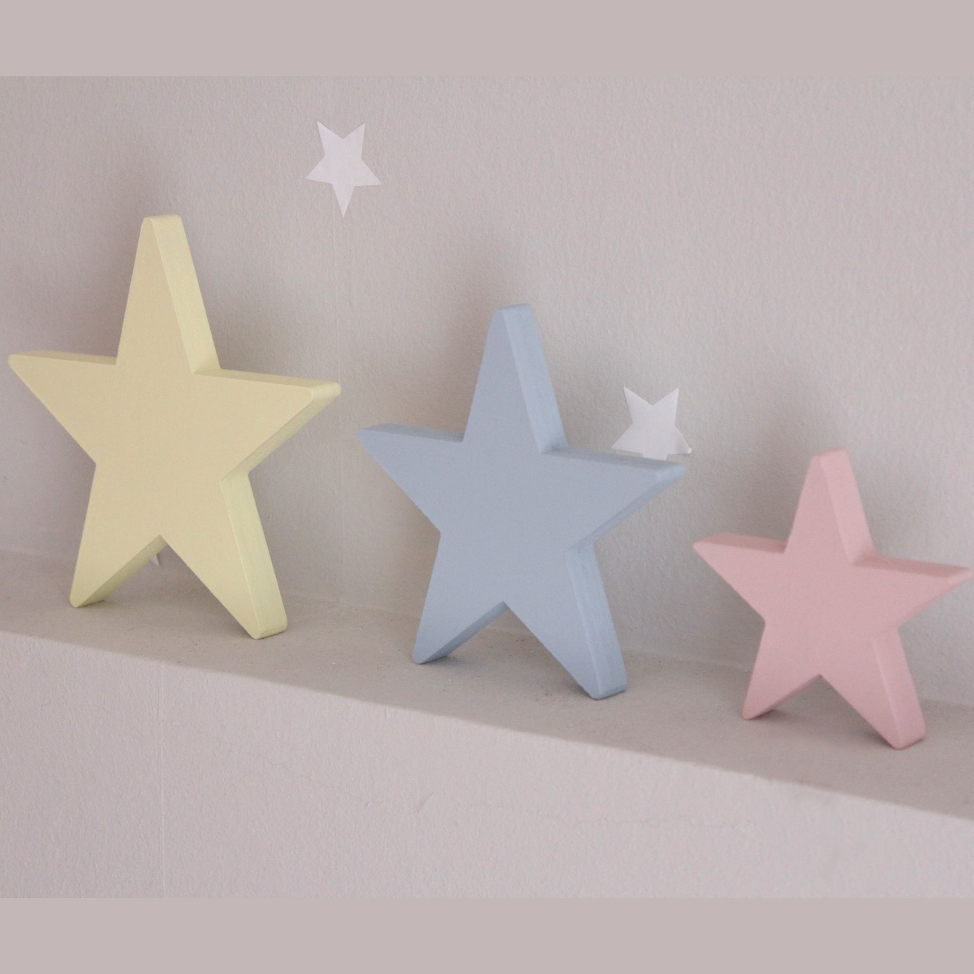 Για να πλαισιώσουμε όμορφα τα ραφάκια μας κατασκευάσαμε εξίσου ιδιαίτερα, ξύλινα διακοσμητικά που στηρίζονται μόνα τους και μπορούν να τοποθετηθούν σε οποιοδήποτε σημείο στο παιδικό δωμάτιο. Τα σχέδια που υπάρχουν είναι σχέδιο σπιτάκι σε δύο διαστάσεις, σχέδιο σύννεφο σε δύο διαστάσεις, σχέδιο φεγγάρι με ματάκι, λαγός ουράνιο τόξο και σχέδιο αστέρι σε τρεις διαστάσεις, Είναι από mdf και βαμμένα με οικολογικά χρώματα. . Δημιουργείστε τον δικό σας μοναδικό συνδυασμό!