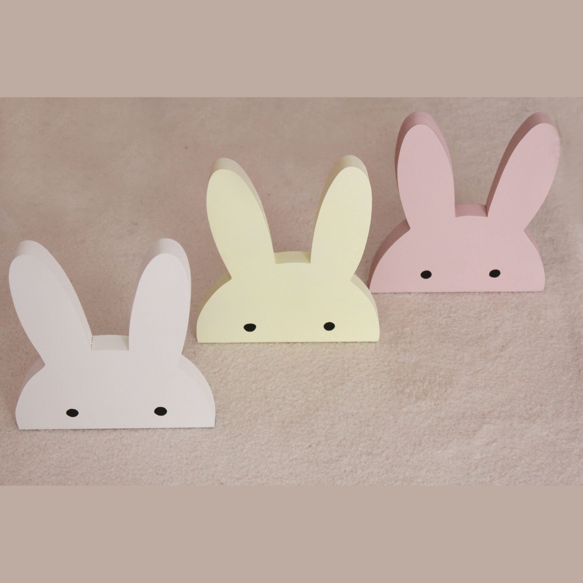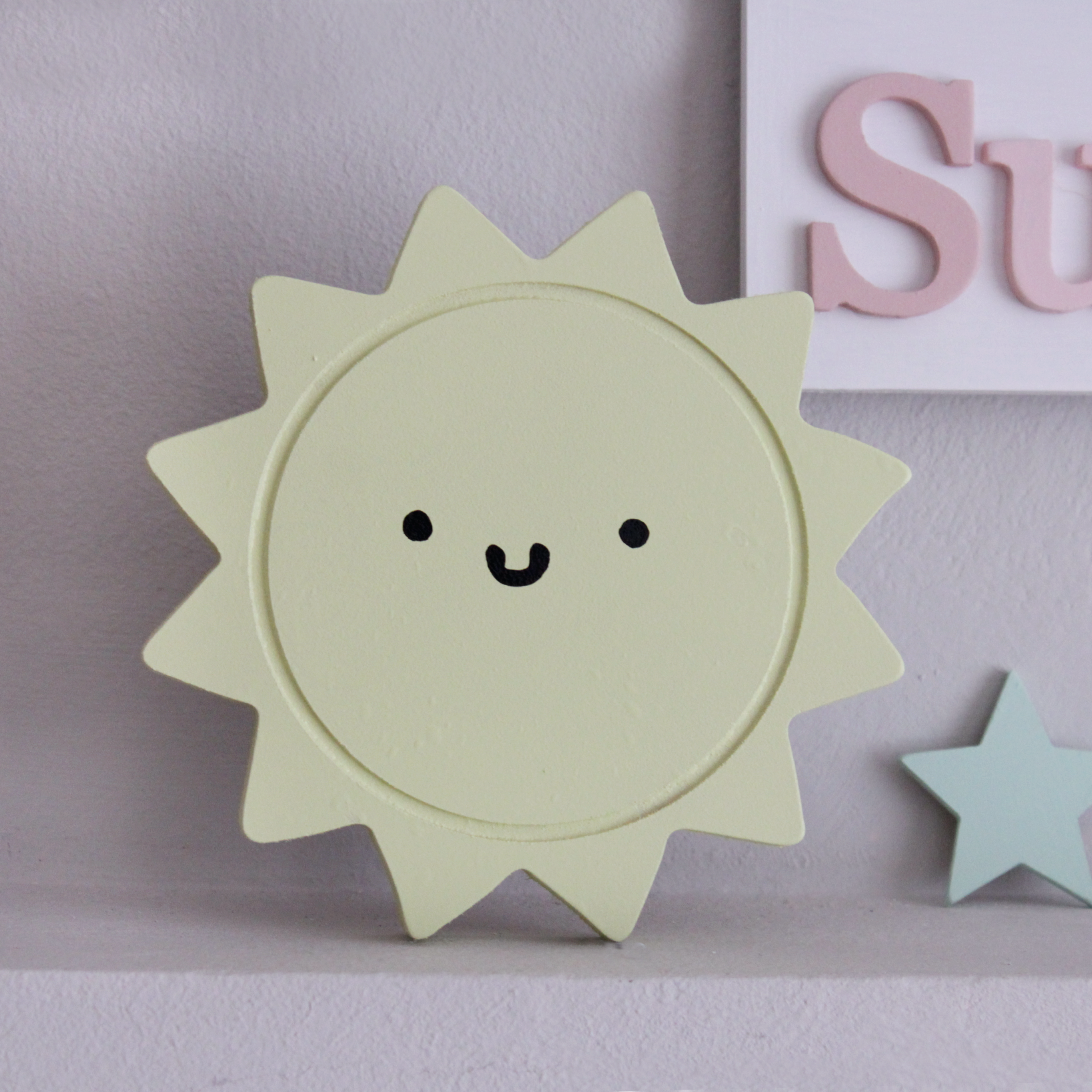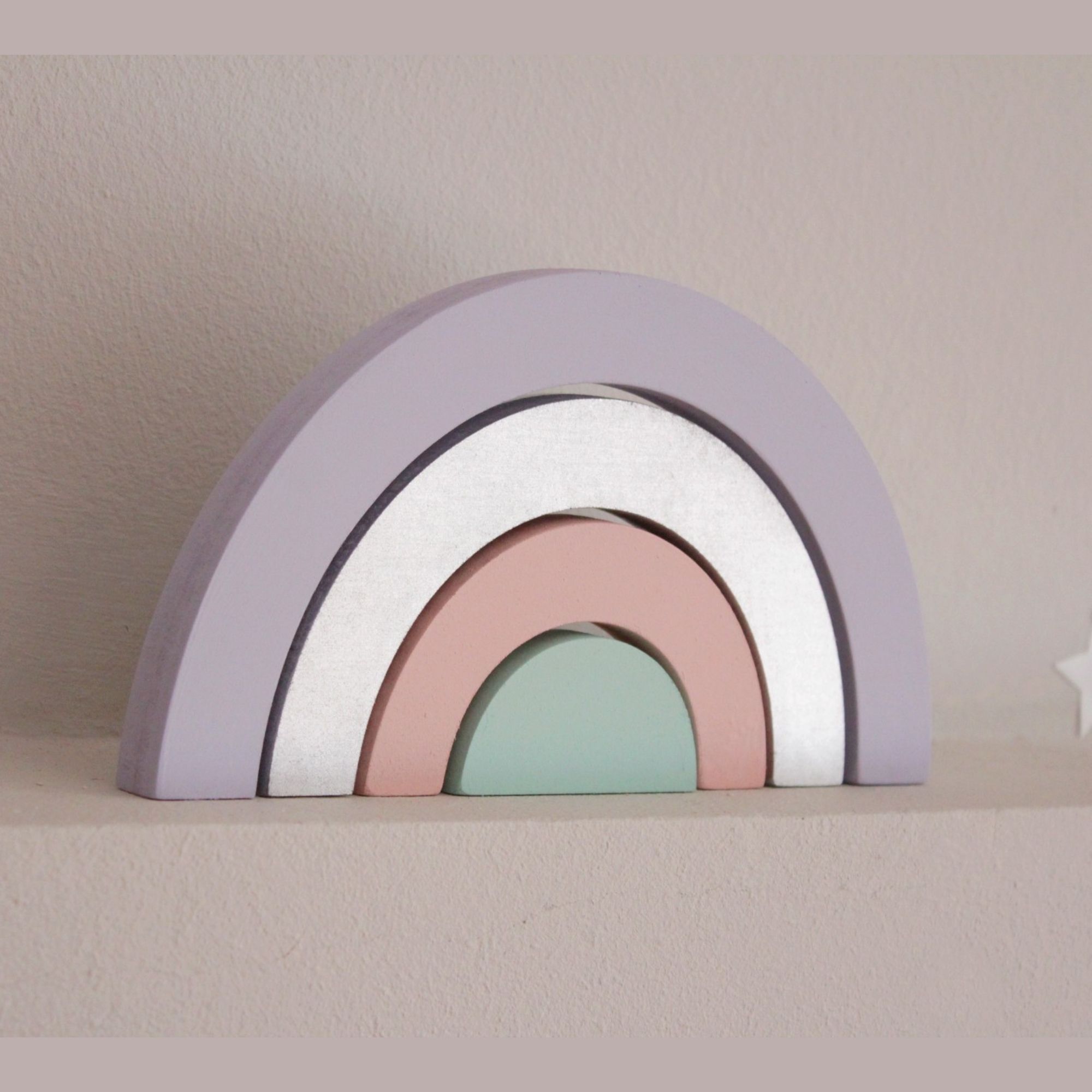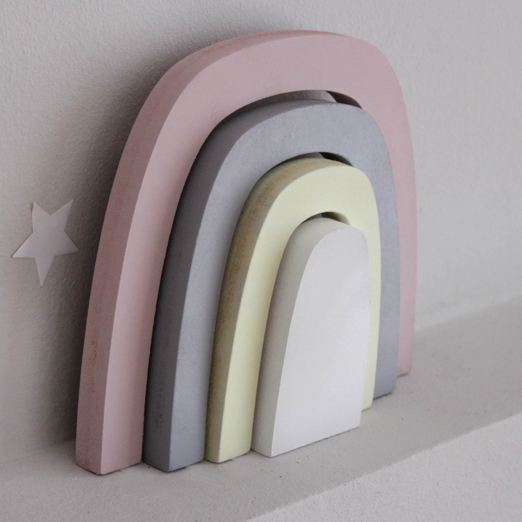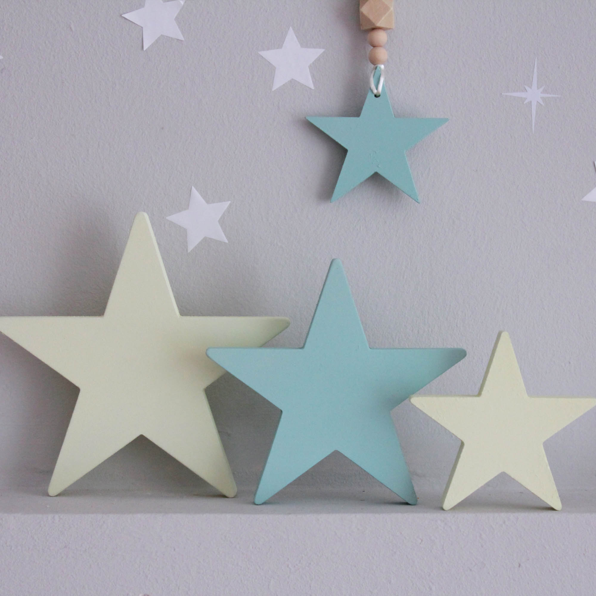 Για να πλαισιώσουμε όμορφα τα ραφάκια μας κατασκευάσαμε εξίσου ιδιαίτερα, ξύλινα διακοσμητικά που στηρίζονται μόνα τους και μπορούν να τοποθετηθούν σε οποιοδήποτε σημείο στο παιδικό δωμάτιο. Τα σχέδια που υπάρχουν είναι σχέδιο σπιτάκι σε δύο διαστάσεις, σχέδιο σύννεφο σε δύο διαστάσεις, σχέδιο φεγγάρι με ματάκι, λαγός ουράνιο τόξο και σχέδιο αστέρι σε τρεις διαστάσεις, Είναι από mdf και βαμμένα με οικολογικά χρώματα. . Δημιουργείστε τον δικό σας μοναδικό συνδυασμό!