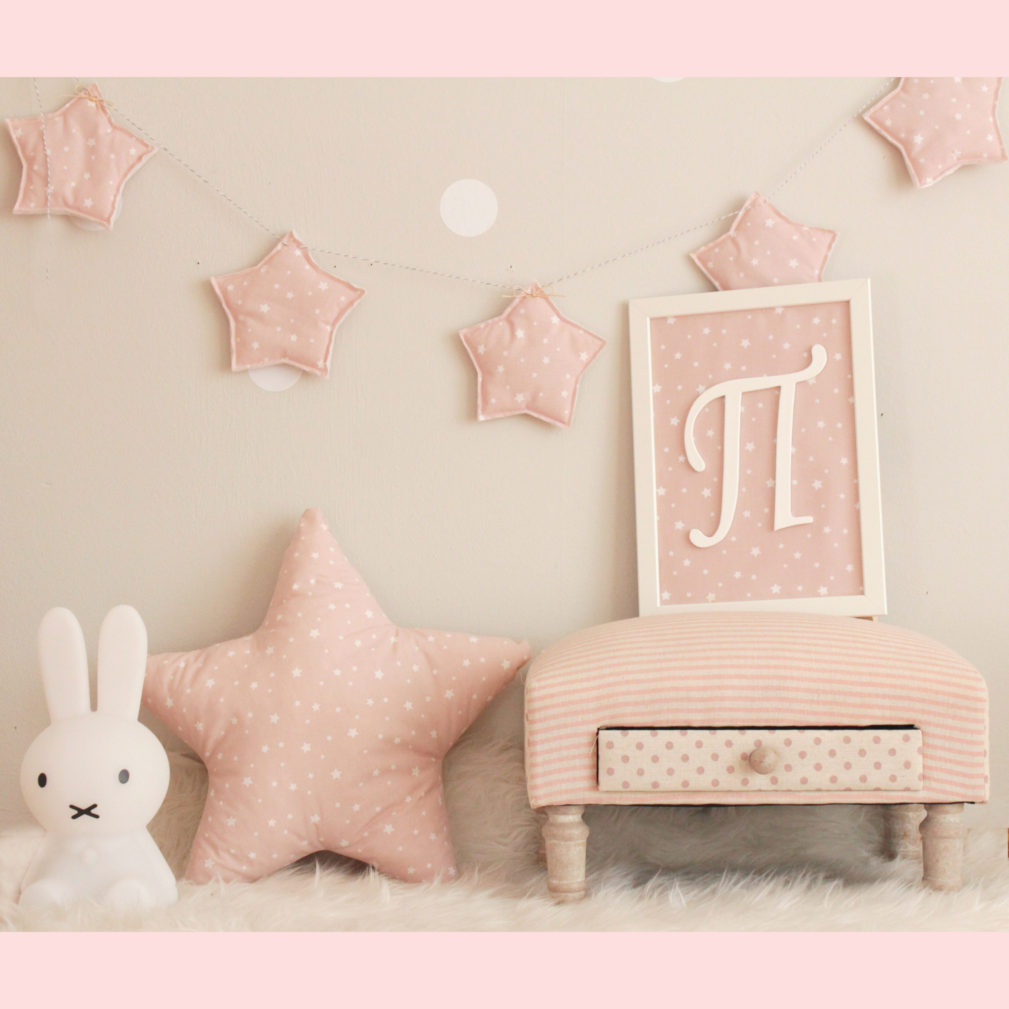 Χαρούμενα και γλυκά μπανεράκια που κάθε δωμάτιο πρέπει να έχει! Γιρλάντα σε σχέδιο puffy αστέρι που αποτελείται από 5 στοιχεία/αστέρια σε αποχρώσεις του ροζ . Μπορούν να τοποθετηθούν στην κούνια, στον τοίχο ή σε οποιοδήποτε άλλο σημείο του δωματίου και να το κάνουν μοναδικό! Είναι από βαμβακερά υφάσματατα και υποαλλεργική γέμιση.
