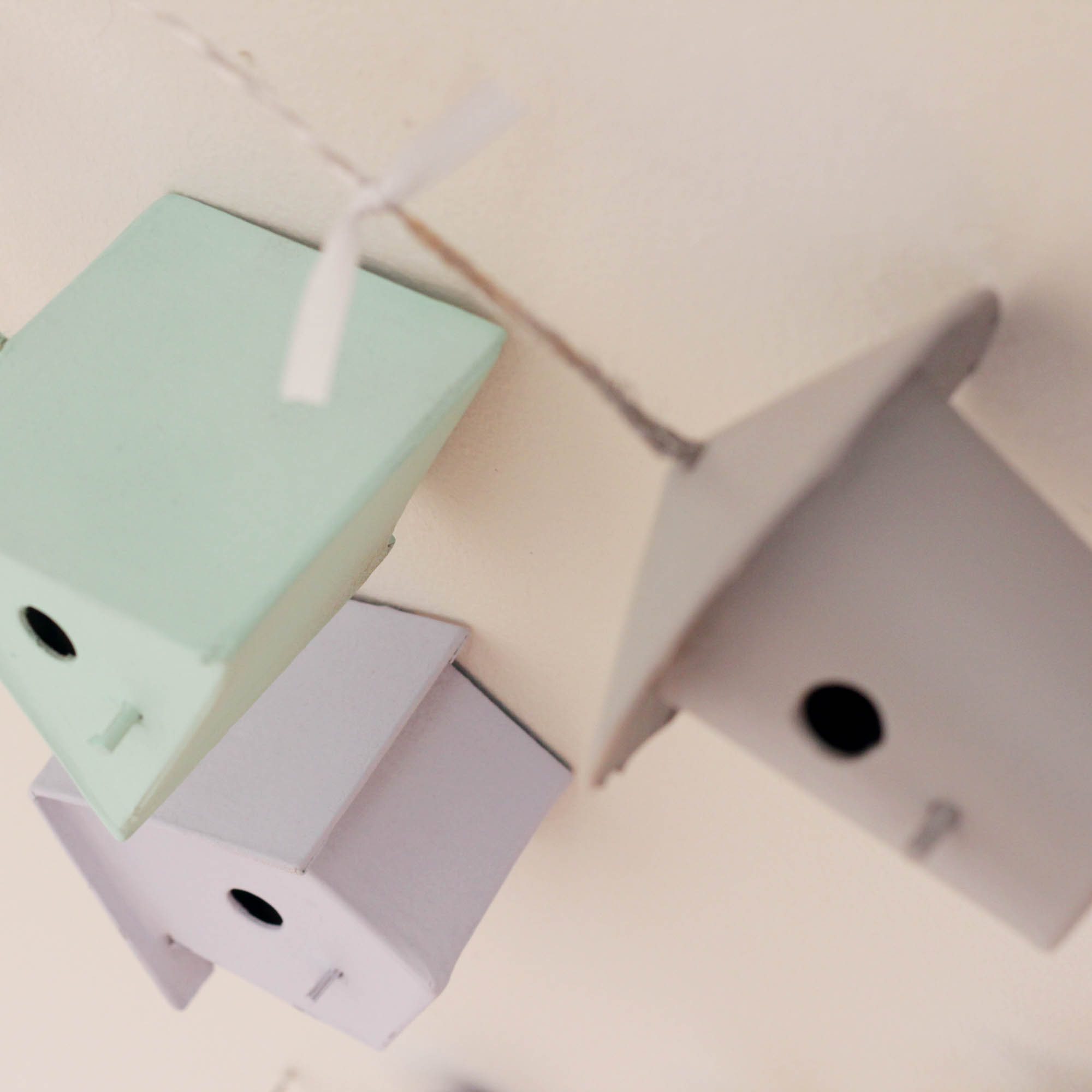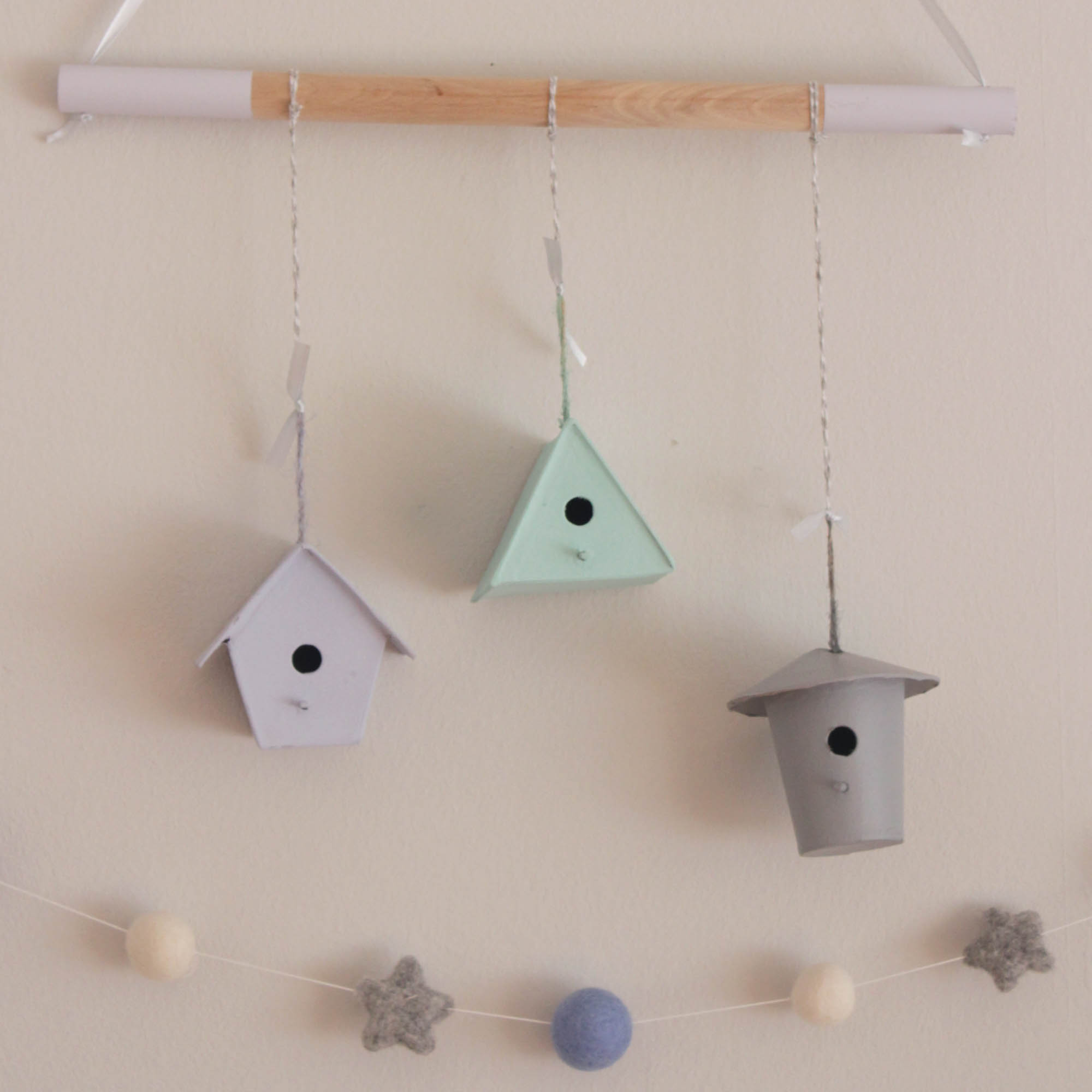 Διακοσμητικό κρεμαστό από ξύλο οξιάς με γλυκά σπιτάκια πουλιών από papier mache σε χρώματα θαλασσί, μέντα και γκρι. Μία ιδιαίτερη προσθήκη για το παιδικό δωμάτιο! Σε περίπτωση που θέλετε αλλαγή στα χρώματα παρακαλώ επιλέξτε παραπάνω για να φτιάξετε τον δικό σας μοναδικό συνδυασμό !