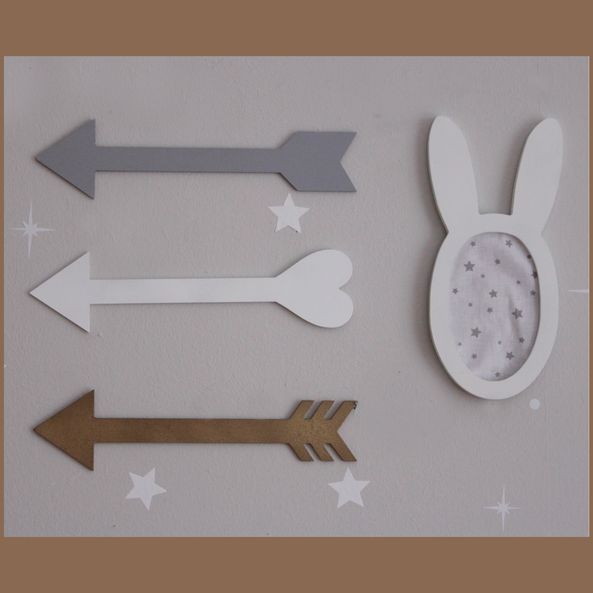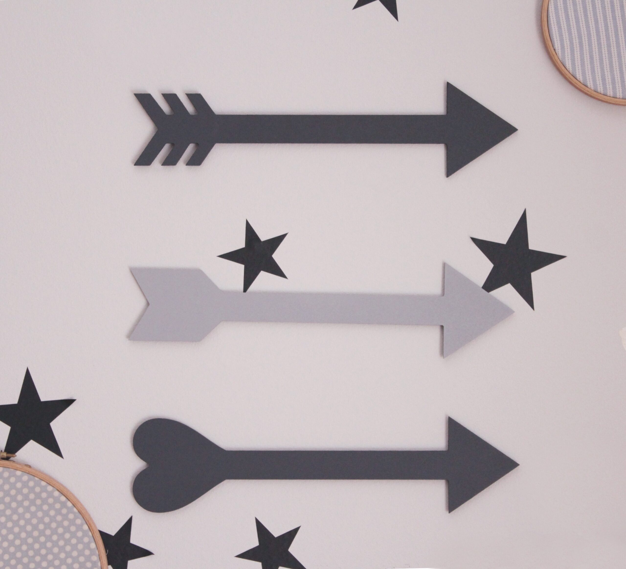 Διακοσμητικά ξύλινα βελάκια που αποστέλλονται με ταινία διπλής όψης για να τοποθετηθούν απευθείας στον τοίχο. Είναι από mdf και γινονται σε χρώματα της επιλογής σας.