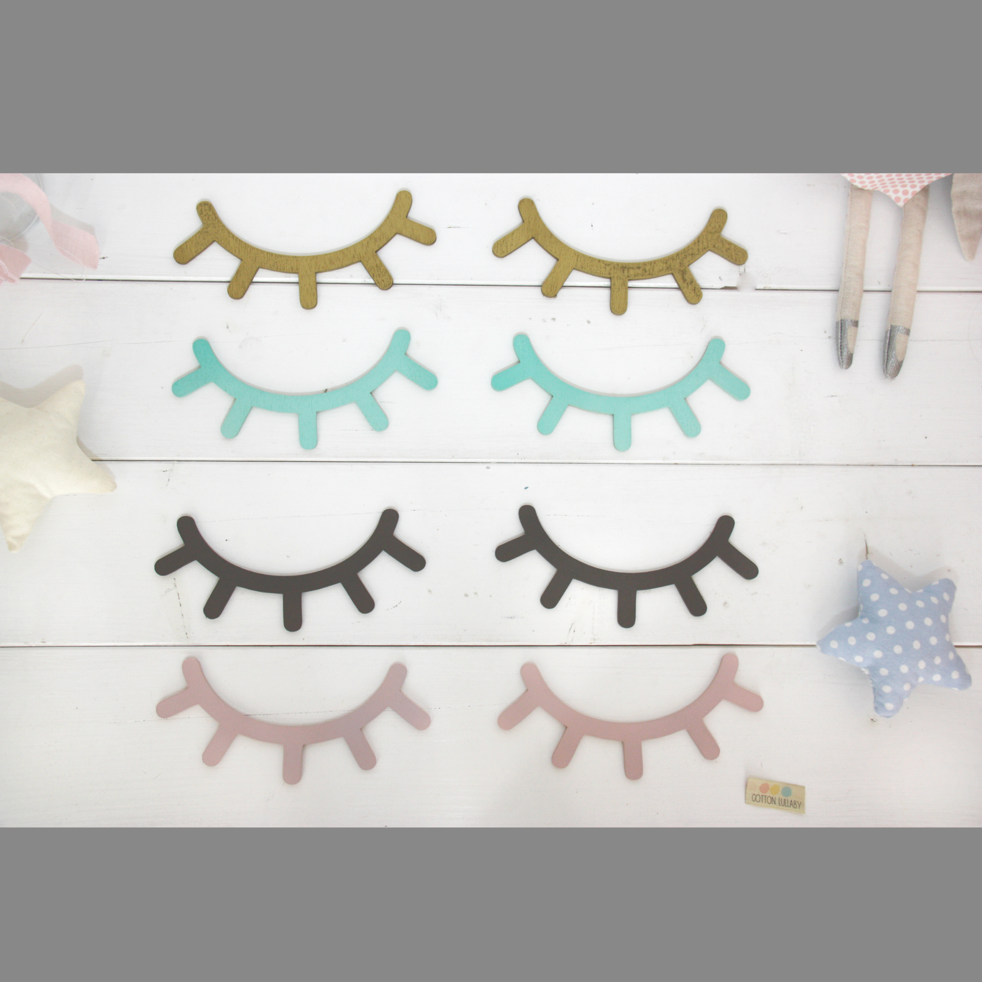 Χειροποίητες ξύλινες διακοσμητικές βλεφαρίδες που γίνονται σε χρώμα της επιλογής σας.Διατίθενται σε σετ 2 τεμαχίων και έχουν στο πίσω μέρος ταινία διπλής όψης για απευθείας τοποθέτηση στον τοίχο. Εναλλακτικά μπορούν να τοποθετηθούν και πάνω σε ράφι σαν ένα όμορφο διακοσμητικό.
