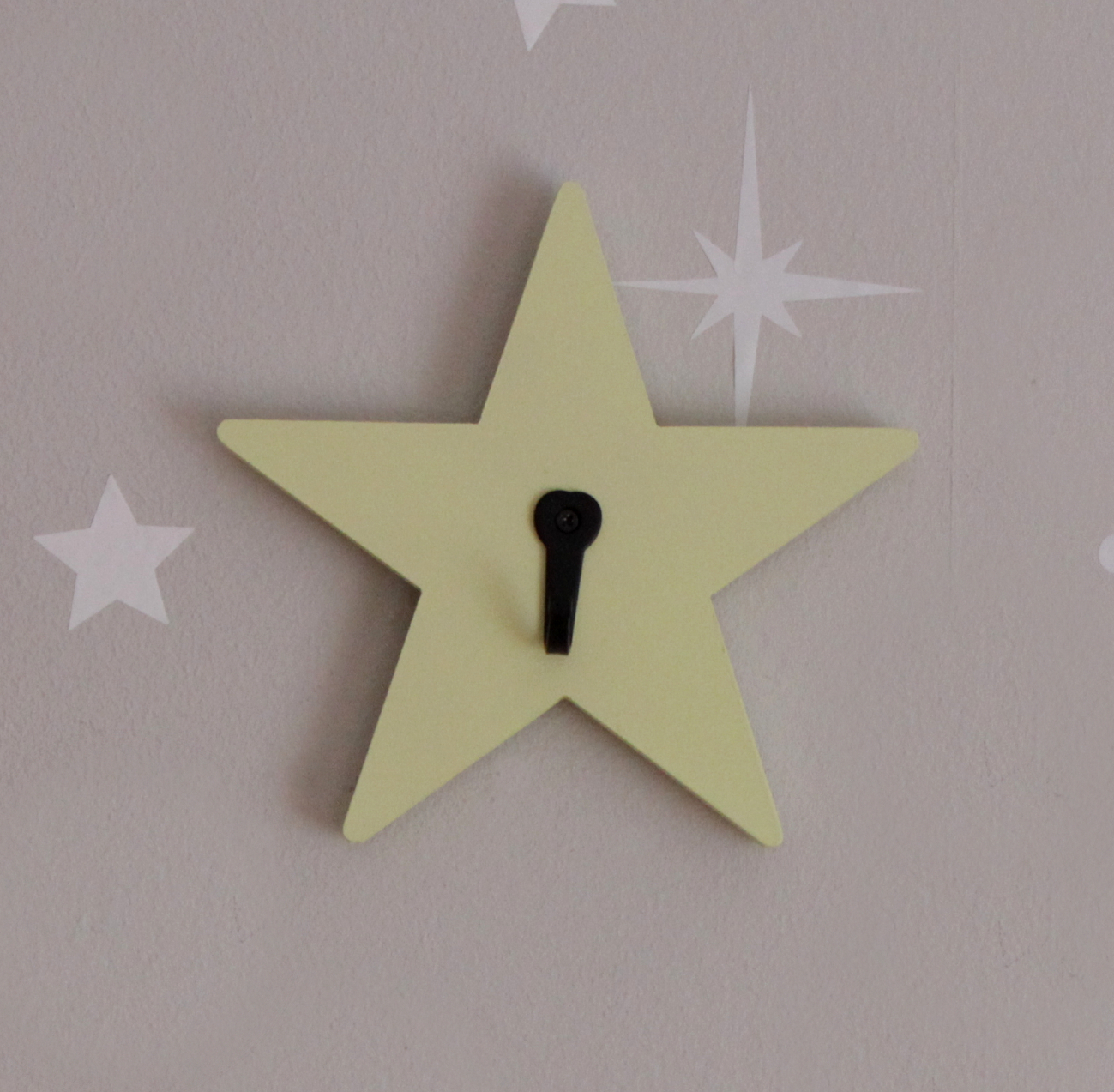 Κρεμάστρα τοίχου σε σε σχέδιο αστέρι και χρώμα κίτρινο απαλό.. Είναι από mdf και έχει ένα κρεμασταράκι. Συνδυάστε τη με ένα ραφι σε σχέδιο της επιλογής σας και κάντε τον δική σας μοναδική σύνθεση!