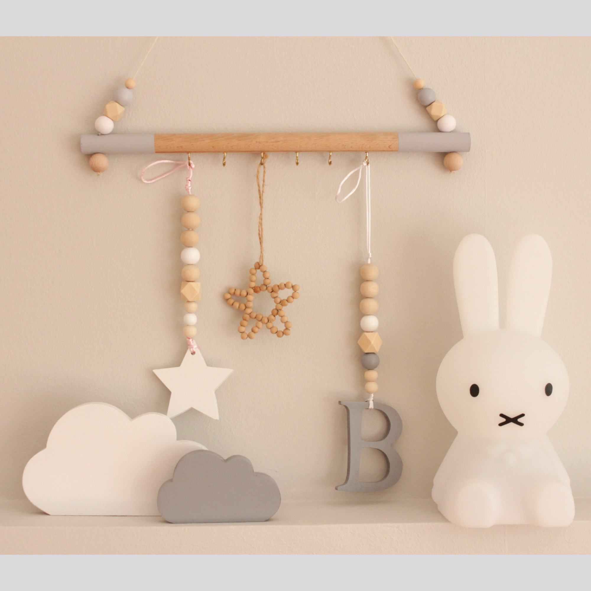 ΞΥΛΙΝΗ ΚΡΕΜΑΣΤΡΑ ΜΕ ΞΥΛΙΝΕΣ ΧΑΝΤΡΕΣ ΜΕ ΓΚΡΙ ΑΚΡΕΣ - Cottonlullaby
