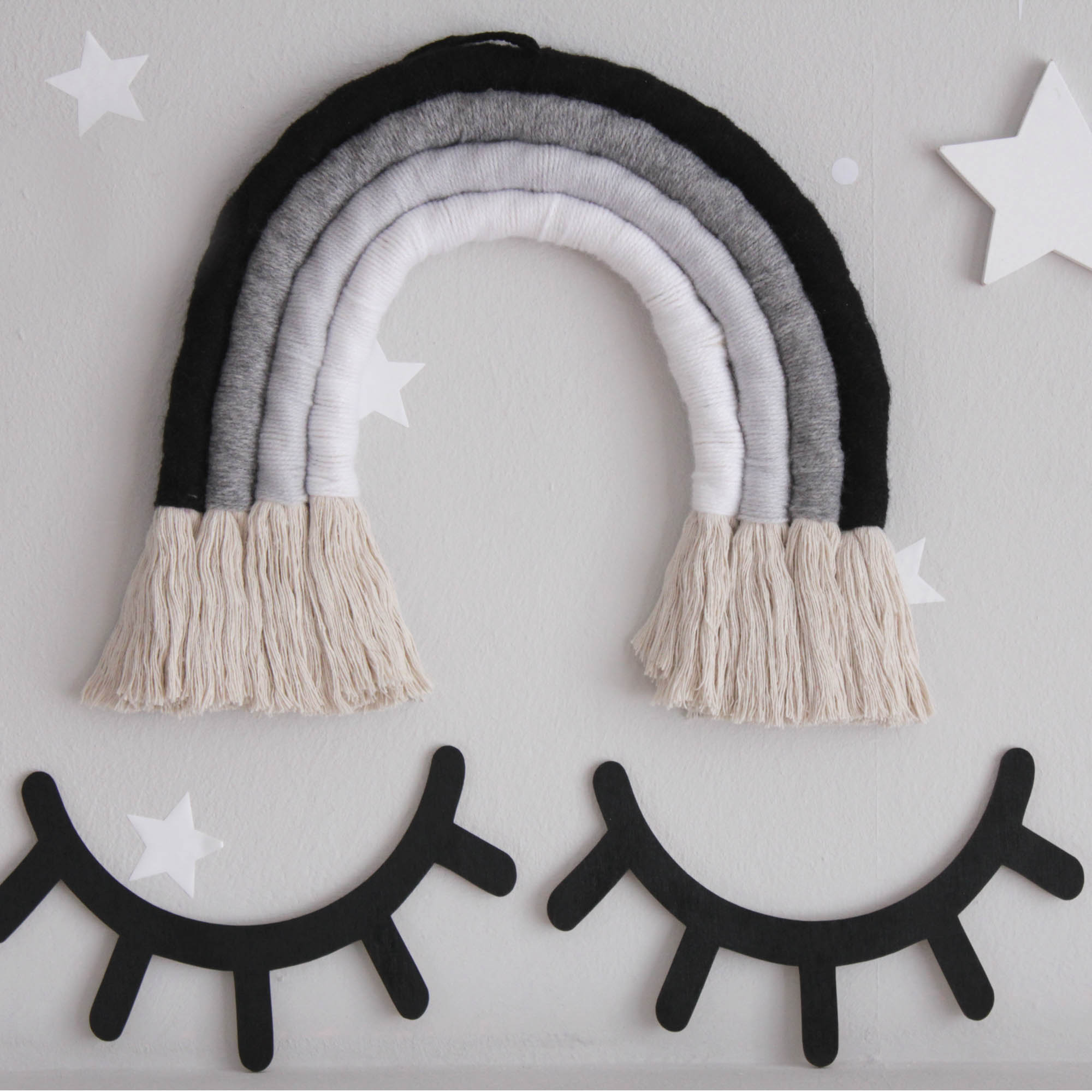 Χειροποίητο ουράνιο τόξο μακραμέ από νήμα και χοντρό κορδόνι. Ενα μοντέρνο διακοσμητικό που τοποθετείται στον τοίχο με καρφάκι σε χρώμα μαύρο, γκρι σκούρο, γκρι απαλό,λευκό. Σε περίπτωση που θέλετε διαφορετικό χρώμα νήματος μπορείτε να δημιουργήσετε τον δικό σας μοναδικό συνδυασμό !