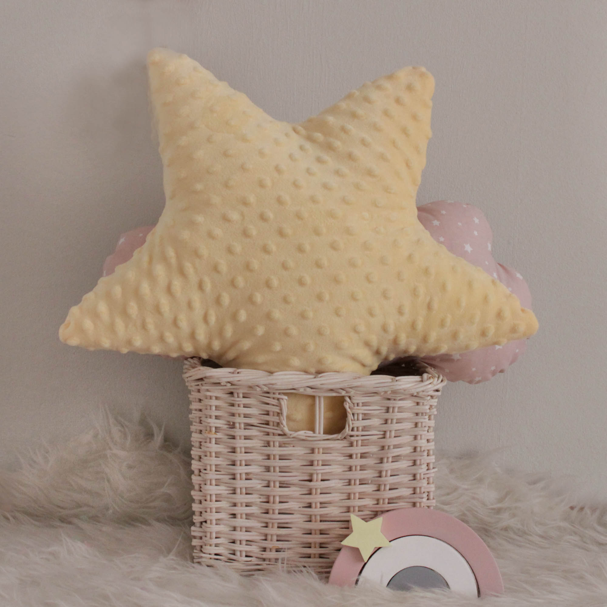 Μαξιλαράκι σε σχέδιο αστέρι σε χρώμα κίτρινο. Έχει υπέροχη υφή, είναι εξαιρετικά απαλό και μαλακό με πέλος τύπου βελουτέ.Έχει υποαλλεργική γέμιση και είναι χωρίς φερμουάρ κατάλληλο για βρέφη.