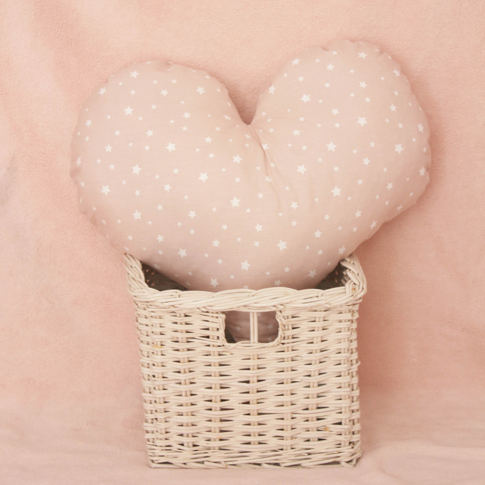 Μαξιλαράκι σε σχέδιο καρδιά σε χρώμα dusty pink με λευκό αστέρακι. Έχει υπέροχη υφή και είναι εξαιρετικά μαλακό.Έχει υποαλλεργική γέμιση και είναι χωρίς φερμουάρ κατάλληλο για βρέφη.