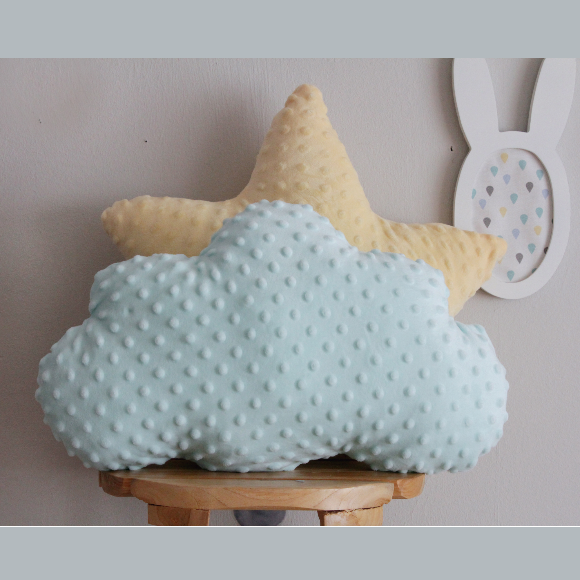 Μαξιλαράκι σε σχέδιο σύννεφο σε χρώμα μέντα. Έχει υπέροχη υφή, είναι εξαιρετικά απαλό και μαλακό με πέλος τύπου βελουτέ.Έχει υποαλλεργική γέμιση και είναι χωρίς φερμουάρ κατάλληλο για βρέφη.