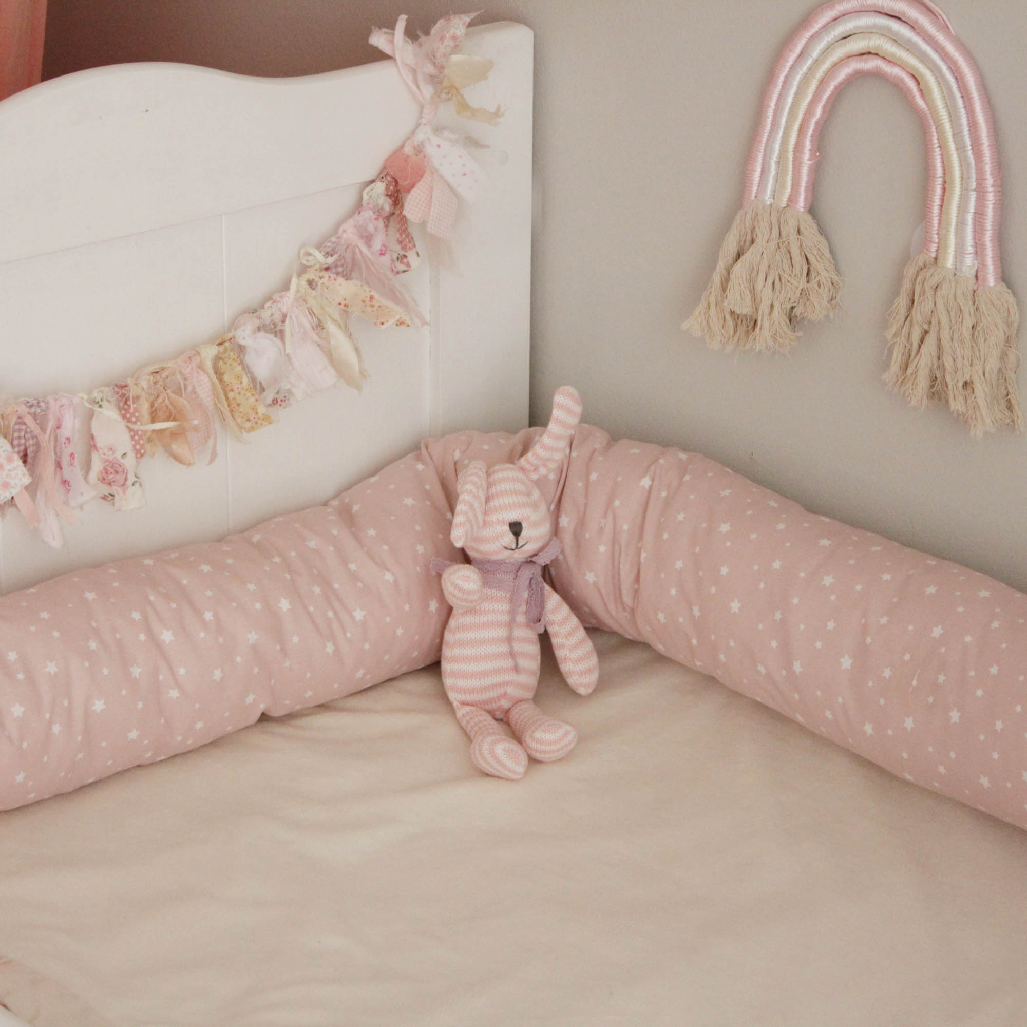 Ένα πανέμορφο προστατευτικό από βαμβακερά υφάσματα και υποαλλεργική γέμιση που μπορεί να χρησιμοποιηθεί τόσο στην κούνια όσο και στο παιδικό κρεβάτι.