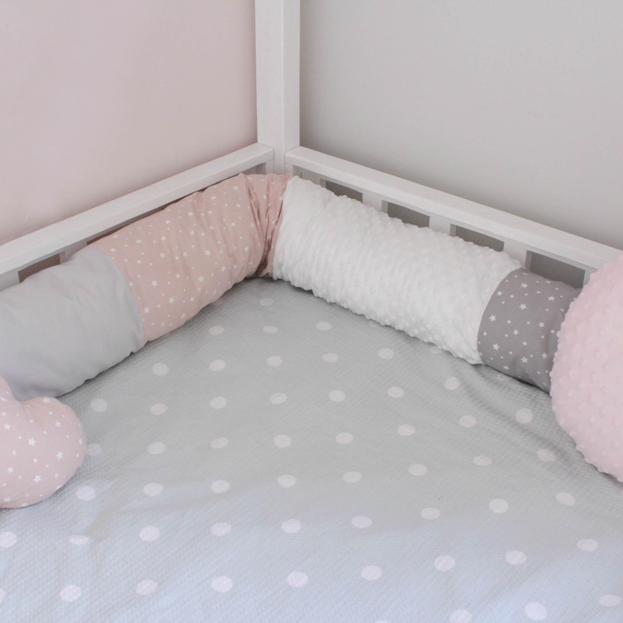 Ένα πανέμορφο προστατευτικό από βαμβακερά υφάσματα και υποαλλεργική γέμιση που μπορεί να χρησιμοποιηθεί τόσο στην κούνια όσο και στο παιδικό κρεβάτι.