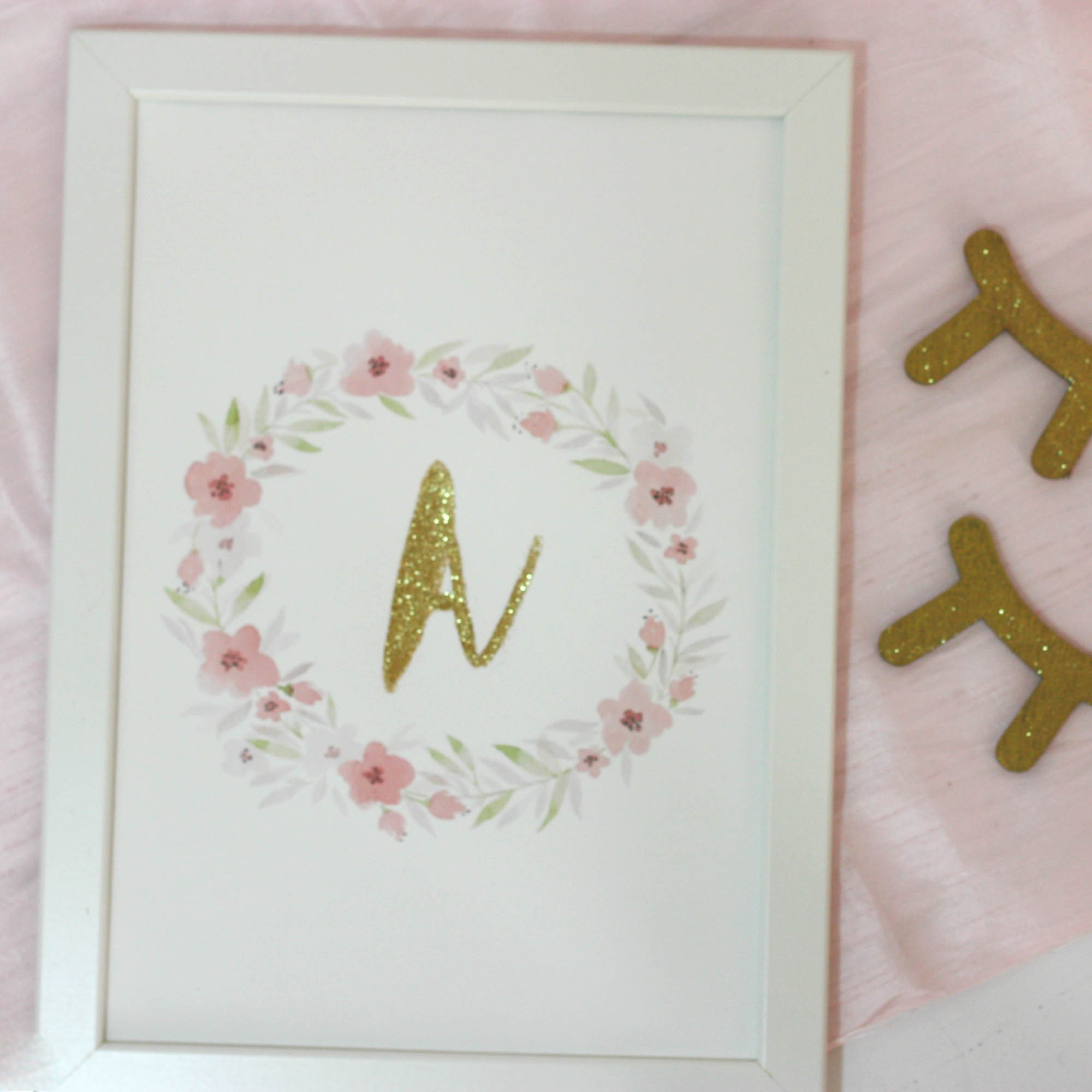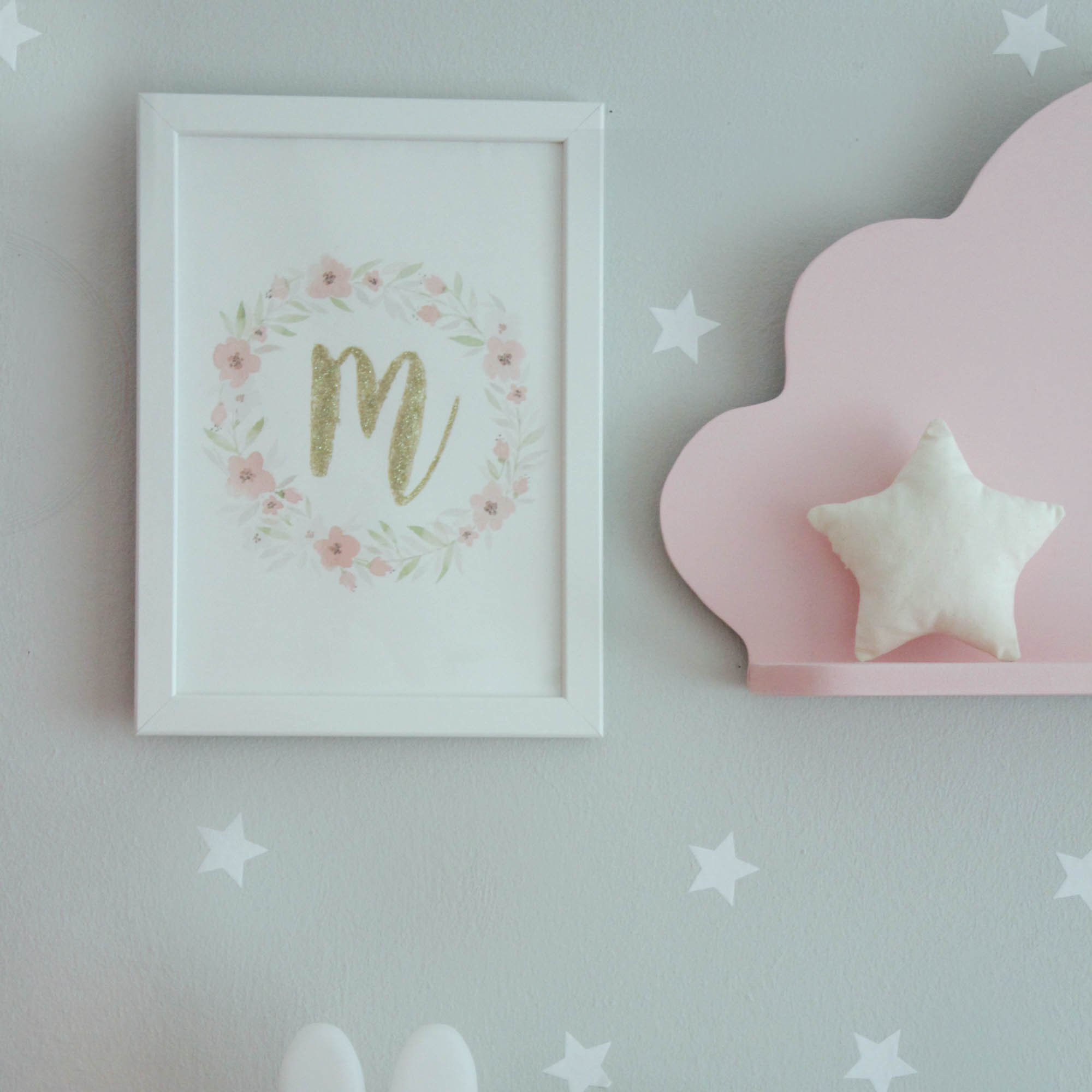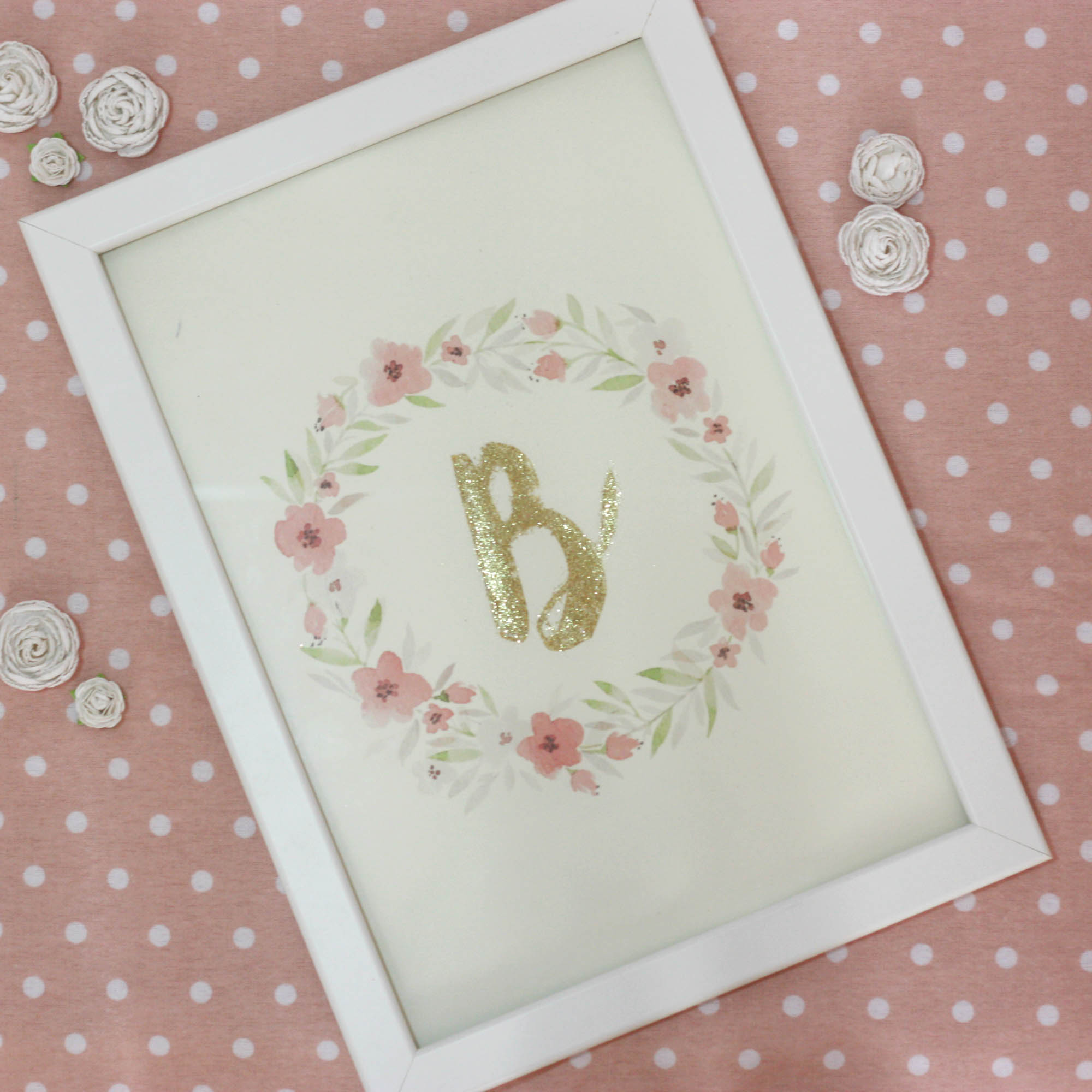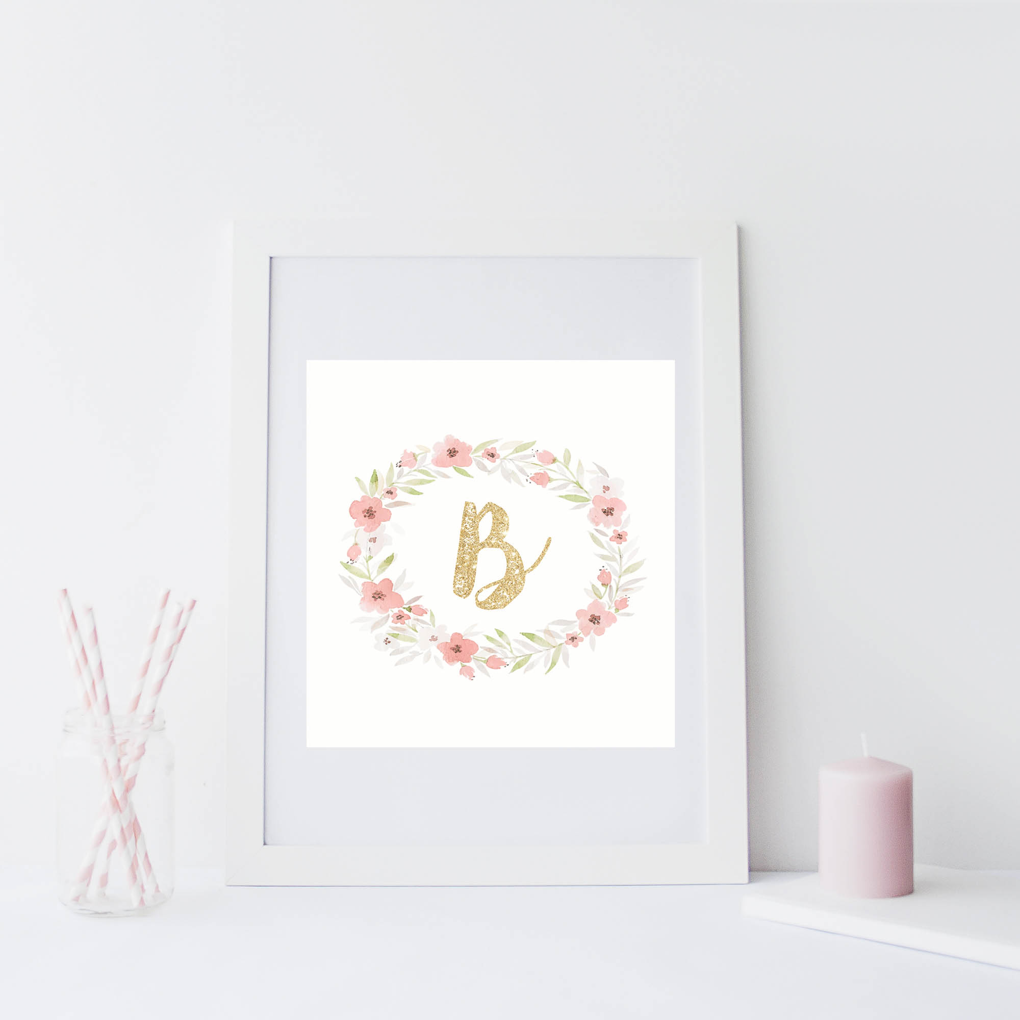 Ιδιαίτερo και γλυκό πόστερ με μονόγραμμα της επιλογής σας σε λατινικούς χαρακτήρες για να διακοσμήσετε το παιδικό δωμάτιο! Φλοράλ στεφάνι σε ροζ αποχρώσεις με μονόγραμμα της επιλογή σας. Είναι τοποθετημένo σε λευκή ξύλινη κορνίζα και όλες οι εκτυπώσεις γίνονται σε υψηλής ποιότητας χρώματα και ανάλυση.
