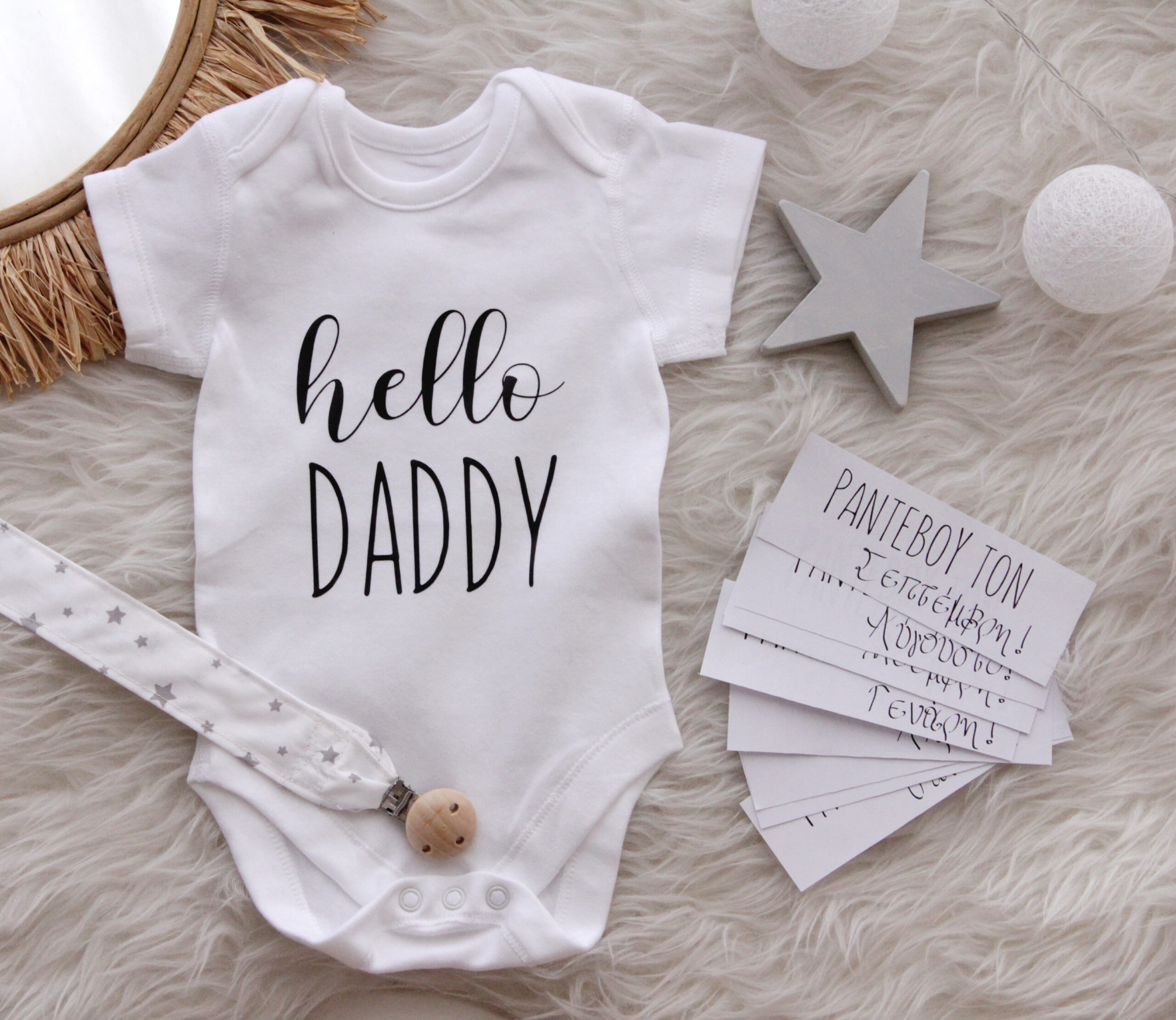 Εναλλακτικά, τα παραπάνω αξεσουάρ μπορούν να αντικατασταθούν με τα αξεσουάρ δώρο στο κουτί pregnancy reveal “hi grandma”. Για οποιαδήποτε αλλαγή παρακαλώ σημειώστε μας στα σχόλια της παραγγελίας σας.Το pregnancy box θα το βρείτε ετοιμοπαράδοτο.