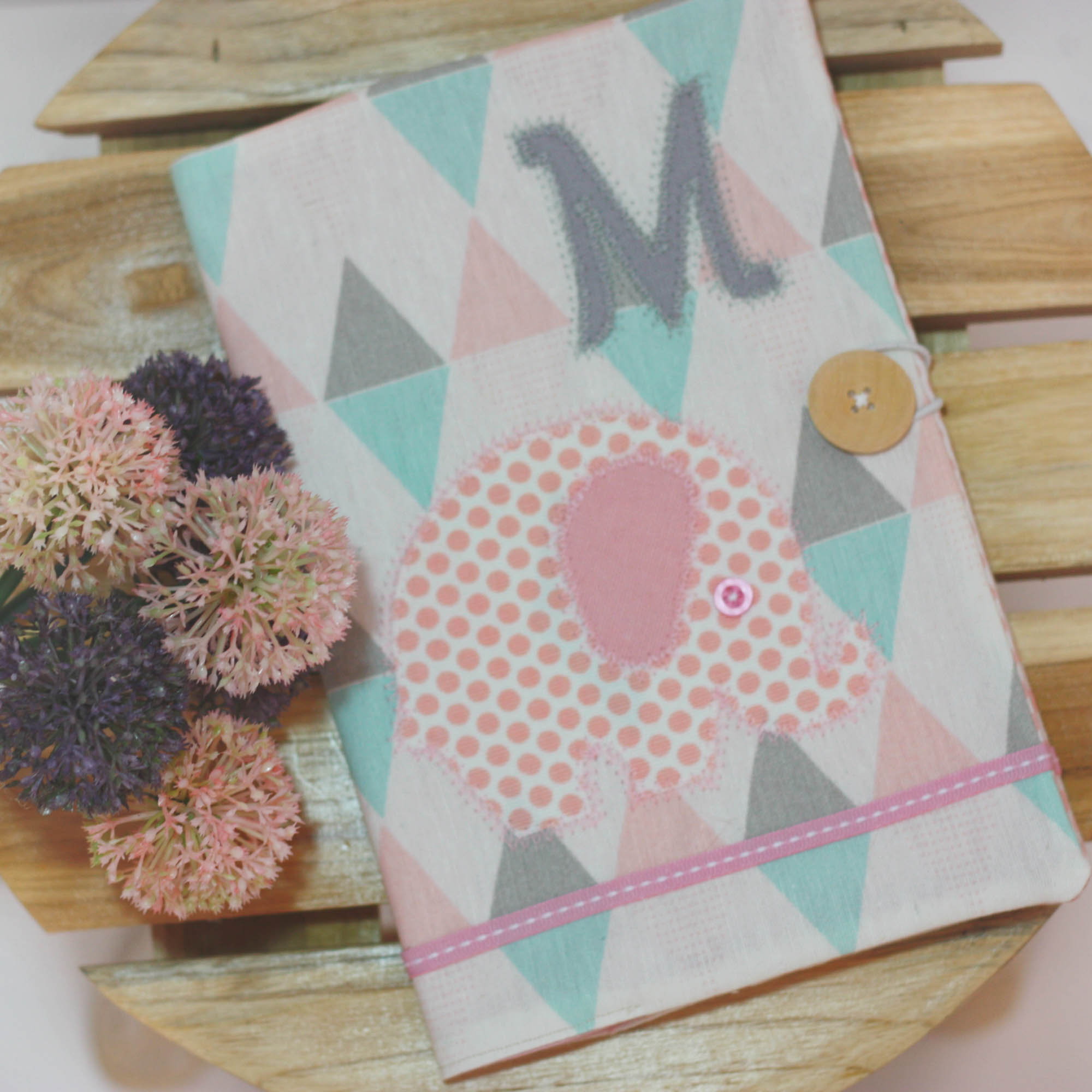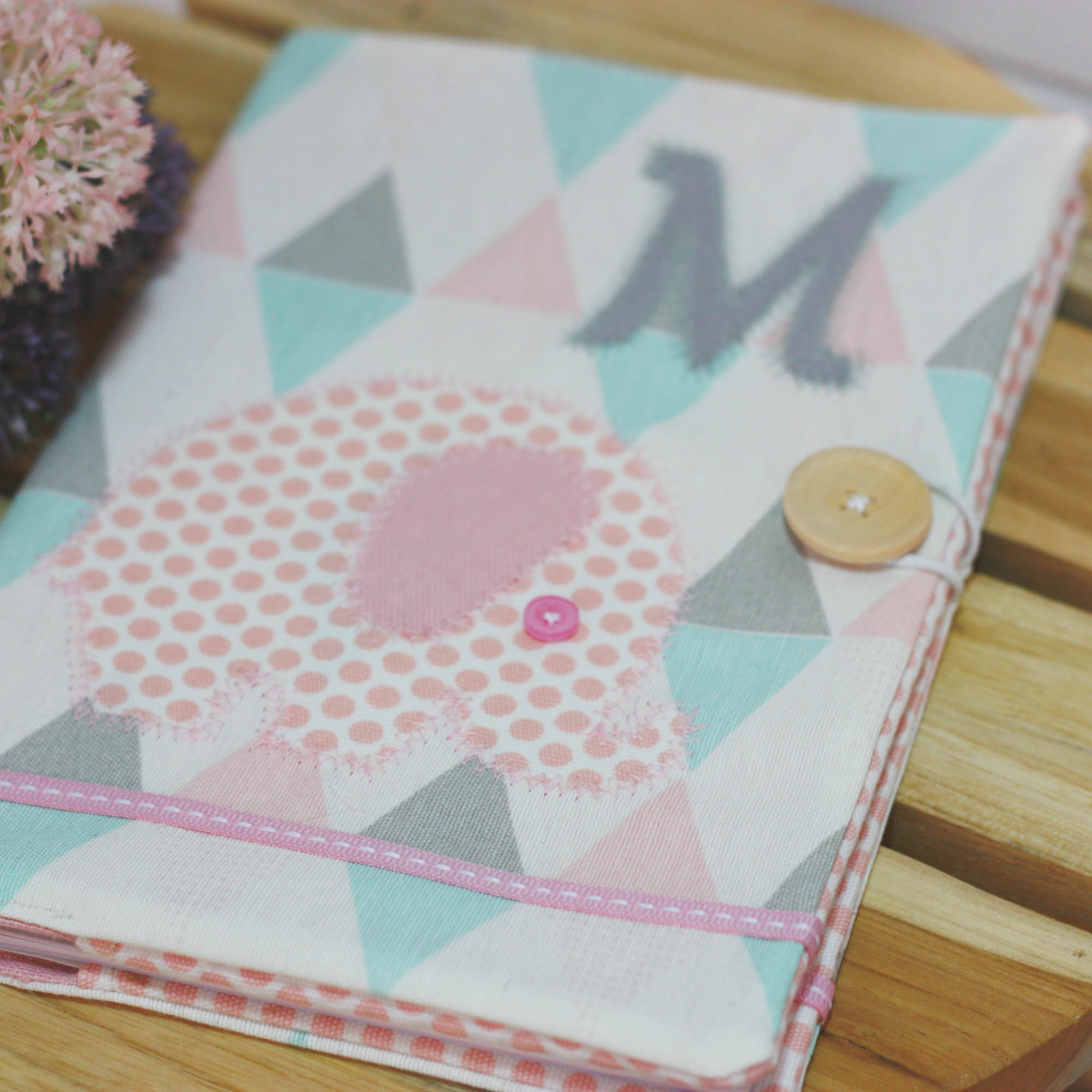 Ιδιαίτερη , χειροποίητη θήκη βιβλιαρίου υγείας σε ροζ, γκρι και μέντα αποχρώσεις από βαμβακερά υφάσματα.