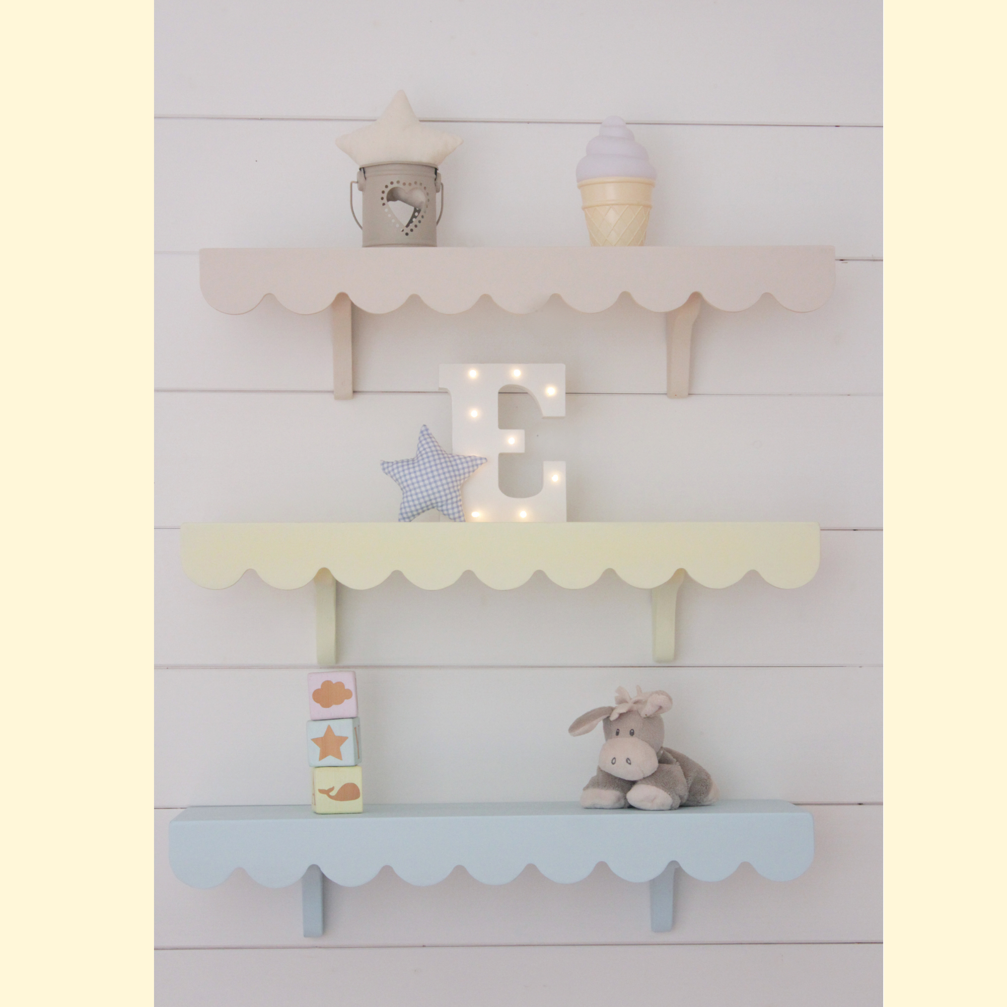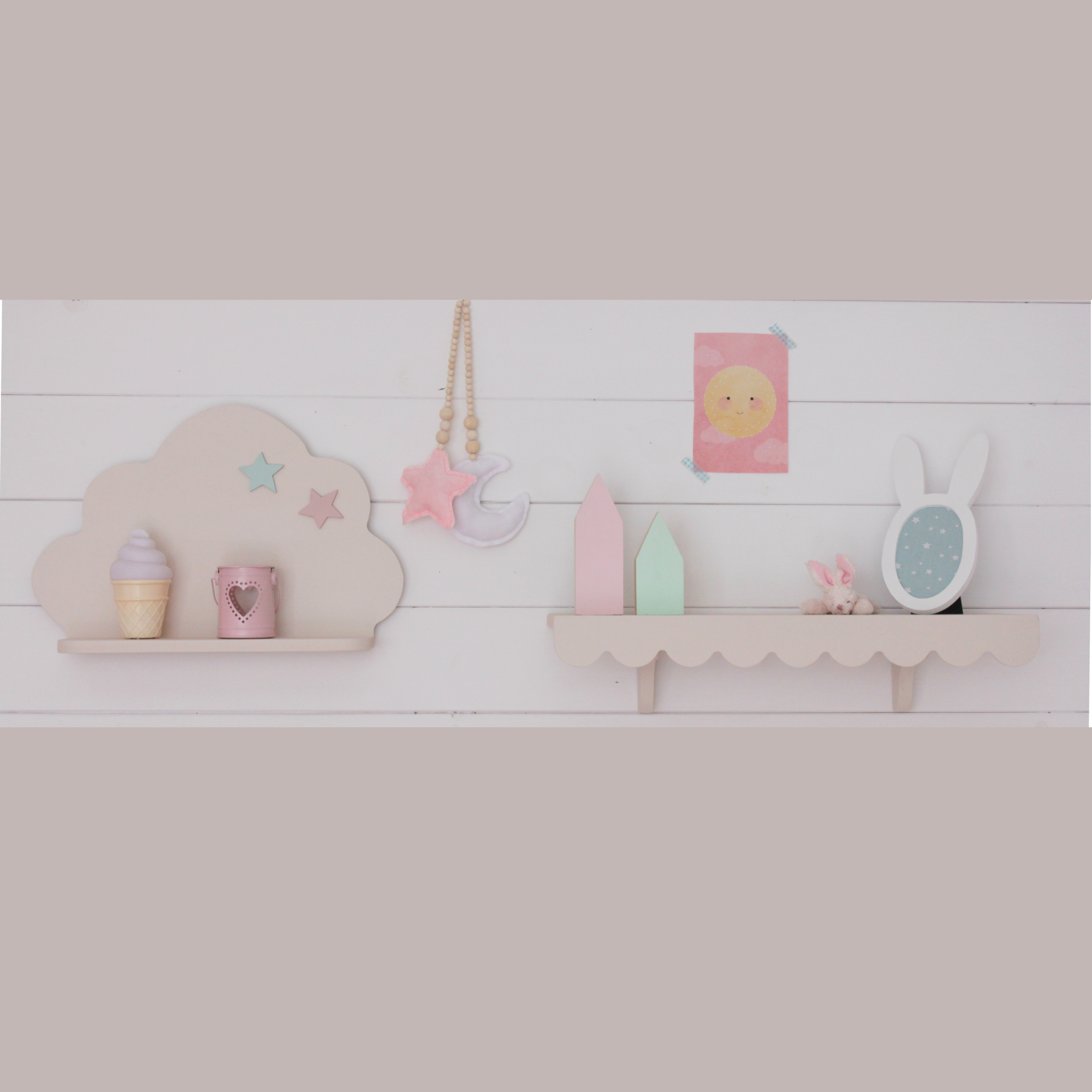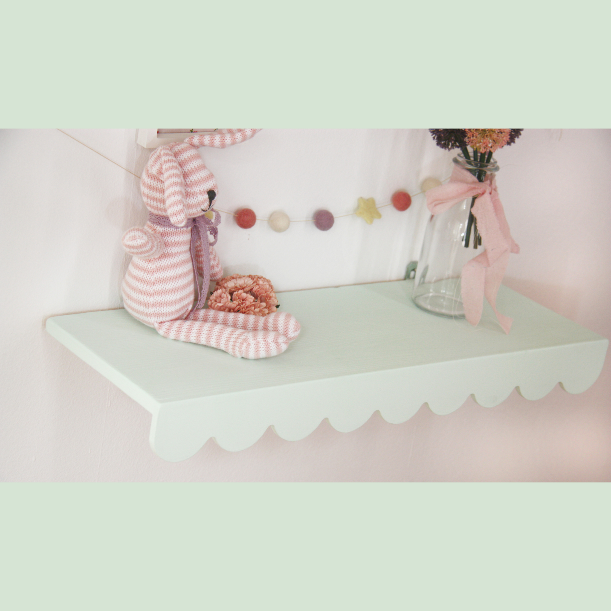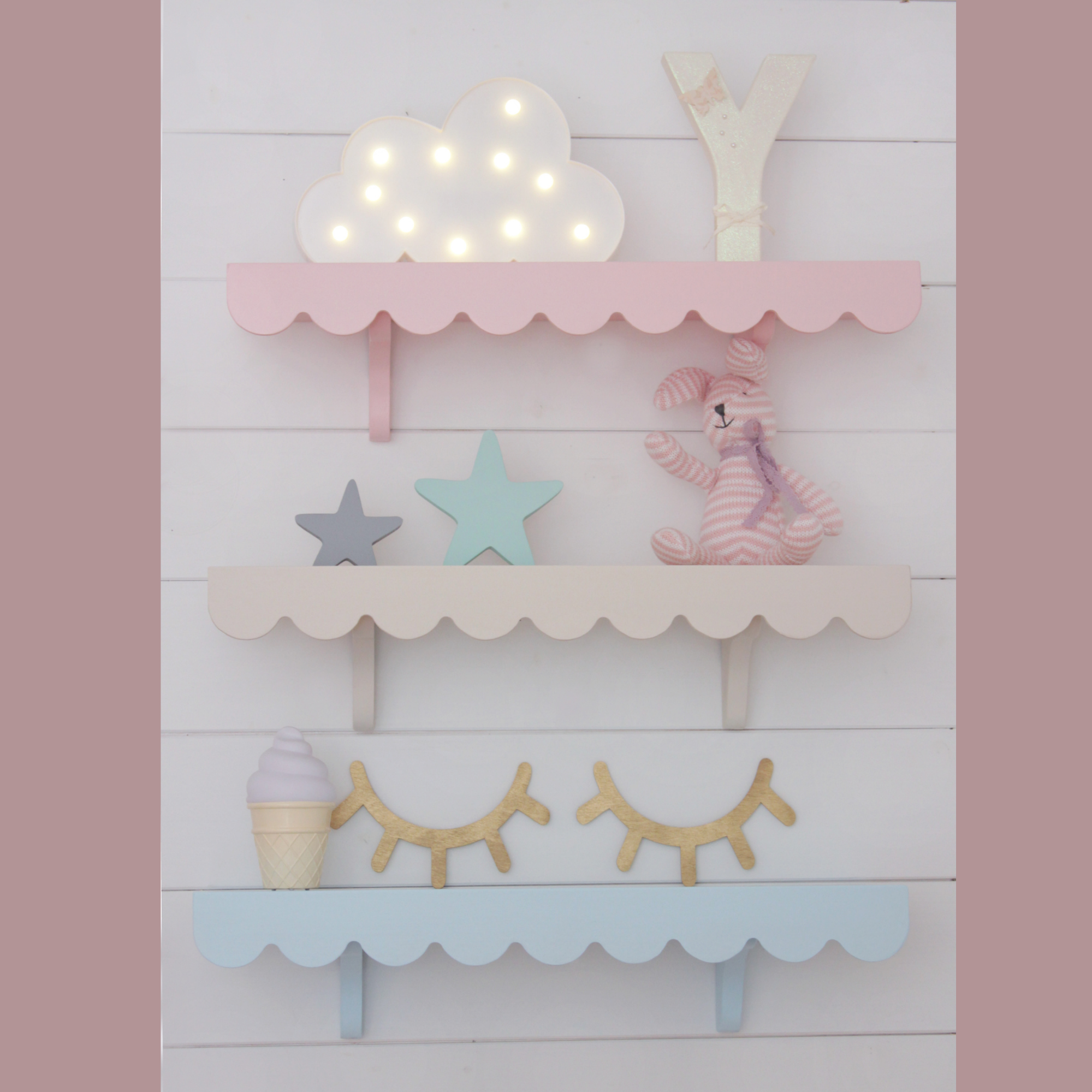Το ραφάκι είναι χειροποίητο και βαμμένο με χρώματα οικολογικά κατάλληλα για παιδικά δωμάτια. Στο πίσω μέρος υπάρχουν εξαρτήματα στήριξης και είναι έτοιμο προς τοποθέτηση.