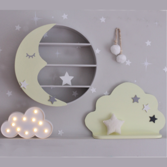 Συνδυάστε το με ένα ραφάκι αστέρι ή ένα ραφάκι σύννεφο, φτιάξτε τον δικό σας μοναδικό συνδυασμό που θα κάνει τον χώρο σας ονειρεμένο! Το ραφάκι είναι από ξύλο σημύδας, χειροποίητο και βαμμένο με χρώματα οικολογικά κατάλληλα για παιδικά δωμάτια. Στο πίσω μέρος υπάρχουν εξαρτήματα στήριξης και είναι έτοιμο προς τοποθέτηση.