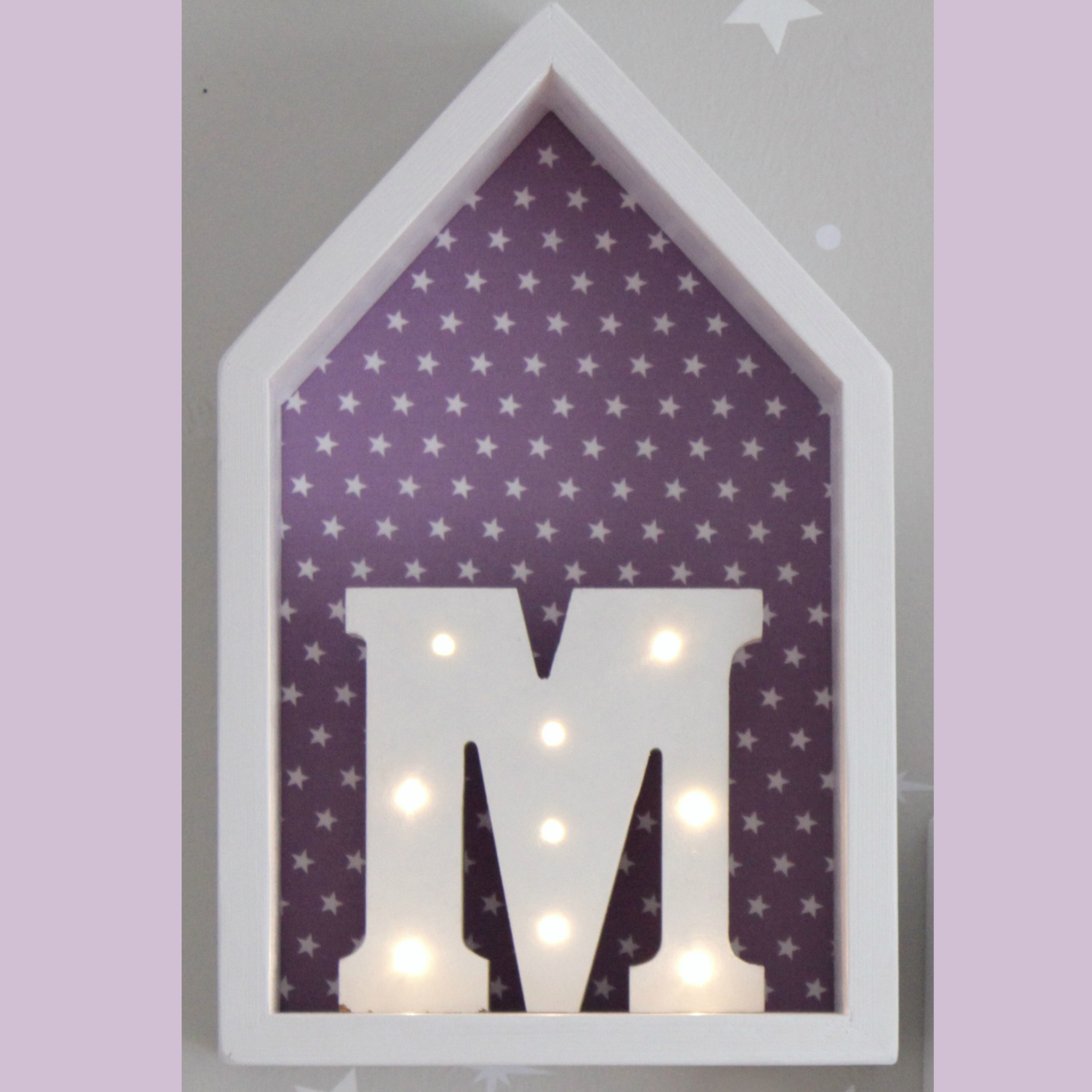 Πανέμορφο ραφάκι σε σχέδιο σπιτάκι σε λευκό χρώμα με ξύλινη πλάτη ντυμένη σε ύφασμα μωβ με λευκά αστεράκια. Το ραφάκι είναι από ξύλο πεύκου, χειροποίητο και στα βαμμένα ραφάκια χρησιμοποιούνται πάντα χρώματα οικολογικά κατάλληλα για παιδικά δωμάτια. Στο πίσω μέρος υπάρχουν εξαρτήματα στήριξης και είναι έτοιμο προς τοποθέτηση.