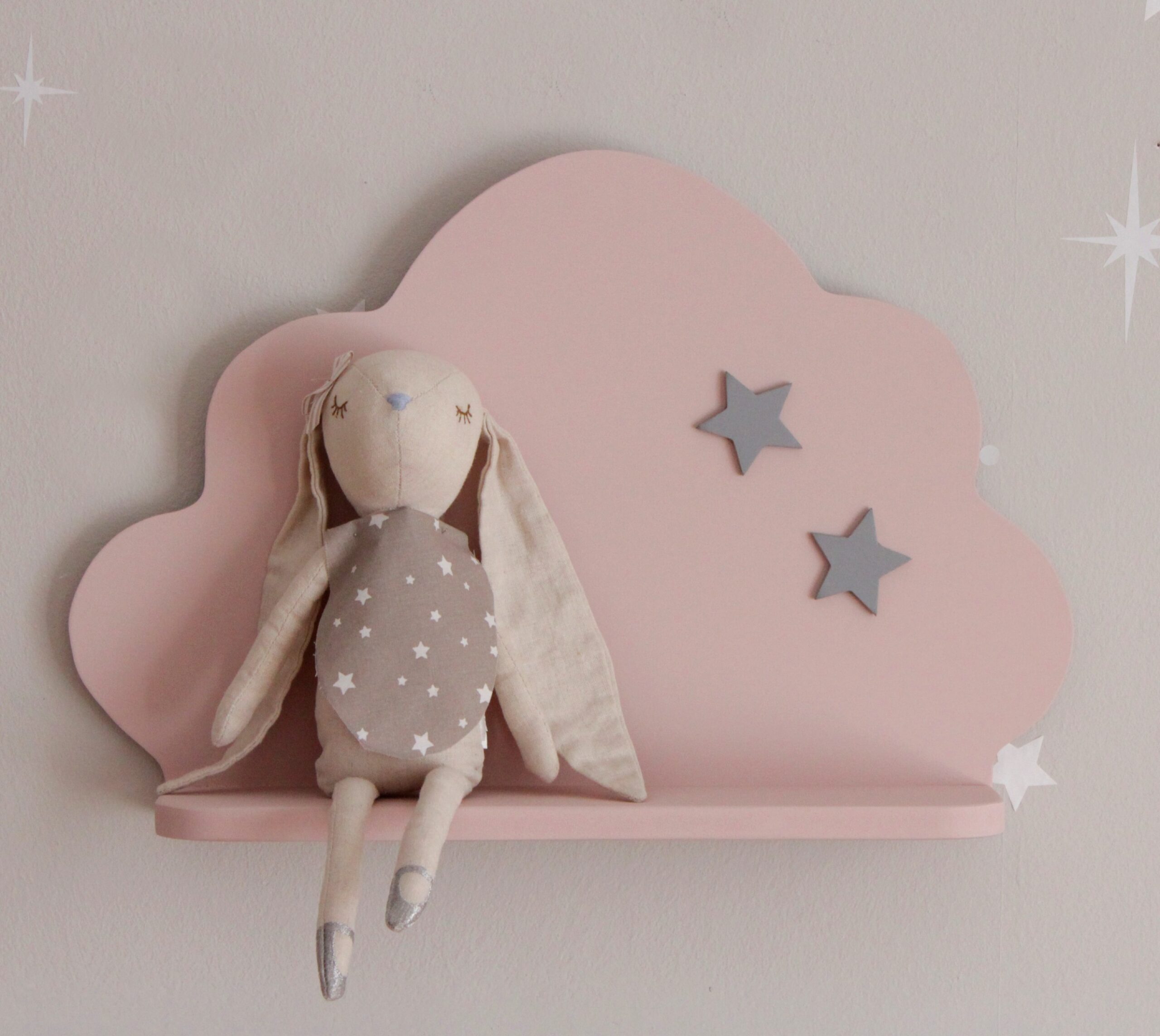 Υπέροχο ραφάκι σε σχέδιο σύννεφο σε dusty pink χρώμα με δύο αστεράκια χρώματος γκρι. Από τα πιο αγαπημένα ράφια που μπορεί να συνδυαστεί πολύ όμορφα με το ραφάκι φεγγάρι και να γίνει μία υπέροχη σύνθεση στον τοίχο του παιδικού δωματίου. Eίναι από MDF, χειροποίητο και τα χρώματα που χρησιμοποιούνται είναι οικολογικά κατάλληλα για παιδικά δωμάτια. Στο πίσω μέρος υπάρχουν εξαρτήματα στήριξης και είναι έτοιμο προς τοποθέτηση.