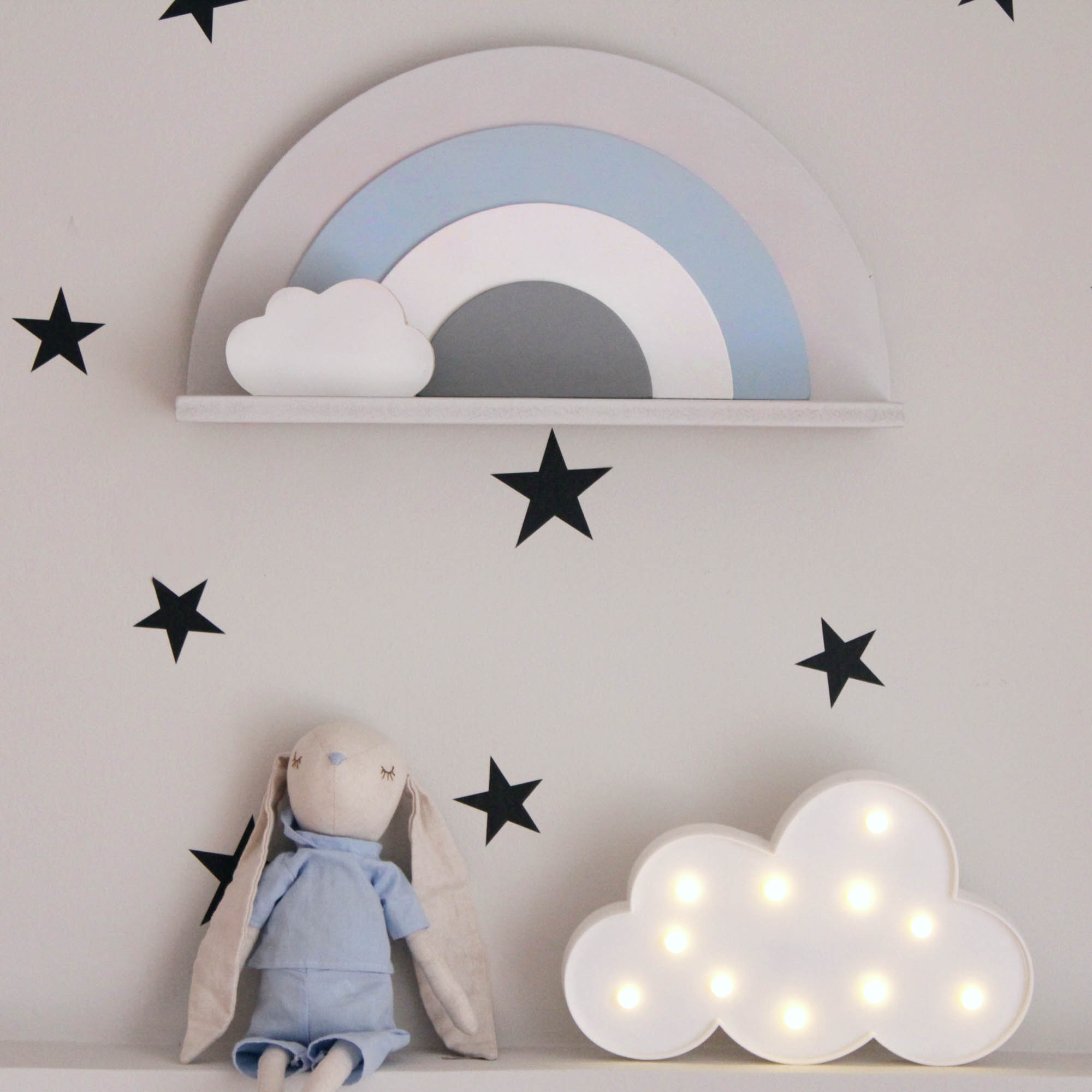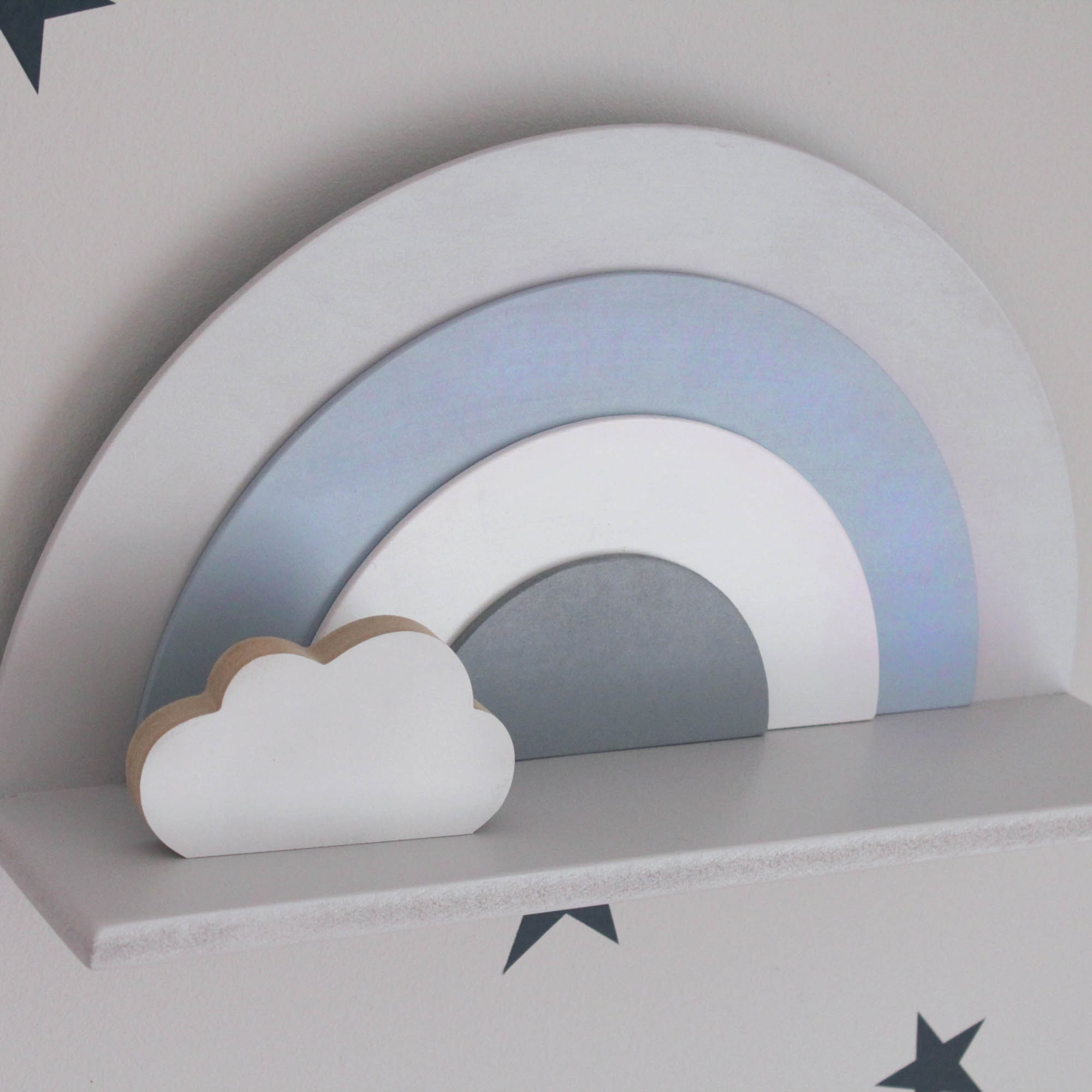 Χρωματιστό,σούπερ χαρούμενο και πολύ γλυκό,το ραφάκι σε σχέδιο ουράνιο τόξο αποτελεί την πιο όμορφη επιλογή στο βρεφικό δωμάτιο! Είναι σε χρώματα απαλό γκρι,θαλασσί,λευκό και γκρι.